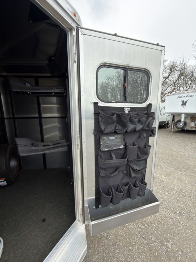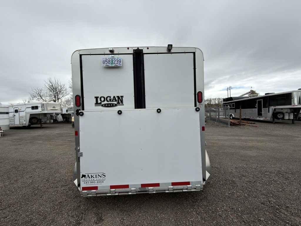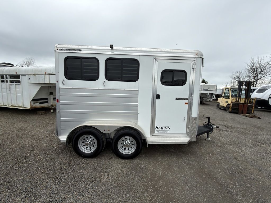 2021 Logan Coach Bullseye Bumper Pull 2 HorseThis trailer hits the mark! The horse trailer for everyday life. Features may include:Structural 7’ Tall 6’ 9” Wide 10’ 3” Floor Length 13’ 3” Total Length Dry Weight: 2,540 lbs GVWR: 7000 lbs Tongue Weight: 380 lbs Galvanized Structural Tubing - Frame Rails, Floor and Wall UprightsAluminum Structural Roof BowsAluminum Structural Roof CoveWheels, Tires and AxlesTorsion AxlesSelf-adjusting BrakesSteel Wheels w/ Center CapsExteriorSmooth Aluminum Sheets (.050 Skins) on Top Half of TrailerCorrugated Aluminum (.050 Skins) on Bottom Half of TrailerTreadbrite Gravel Guard around Front Wrap of BP NoseRear Rubber BumperExterior Tie Ring - One Per Stall on Each SideTack/Dressing RoomHD Aluminum 33” Wide Tack Door OpeningCarpet on FloorBlanket BarSwing-Out Saddle Rack (One Tier Per Stall)12 Bridle HooksCarpet on Top Half of Bulkhead Wall Behind BridlesStall AreaDouble Rear Doors w/ Cam LatchHeadside HD Drop Down Windows w/ Jailbar GrillTailside Bus Windows 20” x 37”Douglas Fir Wood Floor w/ Vortex Rubber Coating1/2” Rubber MatsVortex Kick WallPadded Square Tube DividerPop-up Vent Each Stall All Horse Trailers, will be ran through our service department AFTER they are sold. Pickup & Delivery time is based on the service department’s schedule at the time of purchase. *Please review all features with a salesperson. We try our best, but sometimes features and dimensions get mislisted. Thank you!* Akins Trailer Sales541-995-4884* Located in Harrisburg, Oregon* Financing Available* Trade-Ins Considered www.akinstrailersales.com