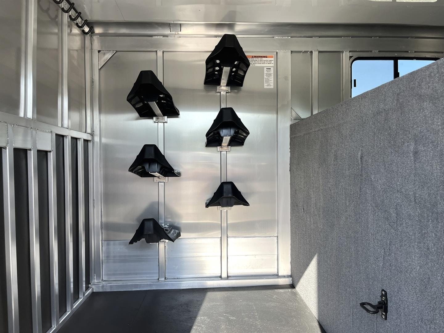 King Size Tack Room with saddle racks, bridle hooks and carpeted deck