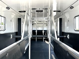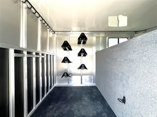 King Size Tack Room with saddle racks, bridle hooks and carpeted deck