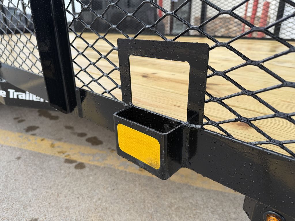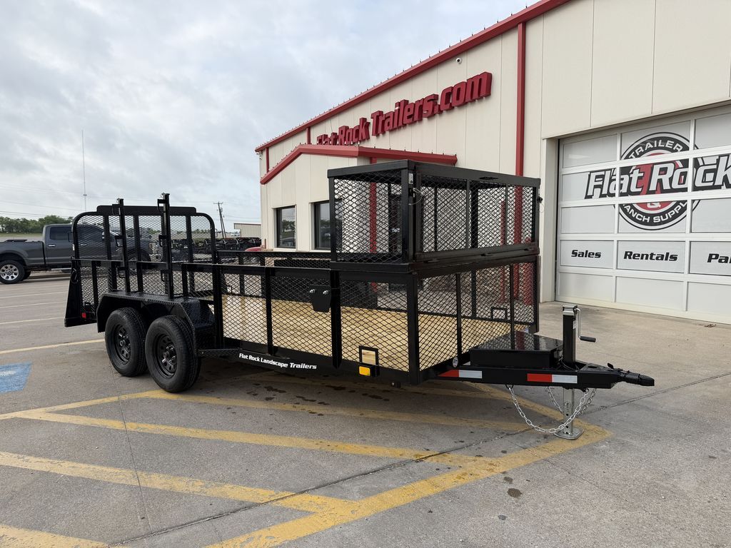 - 77 in x 16’ x 24 in Landscape Trailer - 2 x 3,500 lb. Axles (Brakes on Rear Axle) - ST 205 75 R15 Upgraded Radial Tires - 24 in Expanded Metal Sides - Front Toolbox - Solid Side Fender Baskets - Front Tongue Basket w/ Top Cover - H/D Spare TIre Mount - 48 in Spring Assist Rear Ramp Gate - Weed Eater Racks - Stake Pockets with Cut Outs - 4 in Channel Wrapped Tongue - 2 in 8K Coupler - 3 in x 2 in x 3/16 in Angle Frame - Treated Wood Floor - 7K Set Back Jack with Foot and Brace - 5 on 5 Bolt Pattern   - Empty Weight: 2,050 lbs.  - GVWR: 7,000 lbs.  - Carrying Capacity: 4,950 lbs