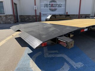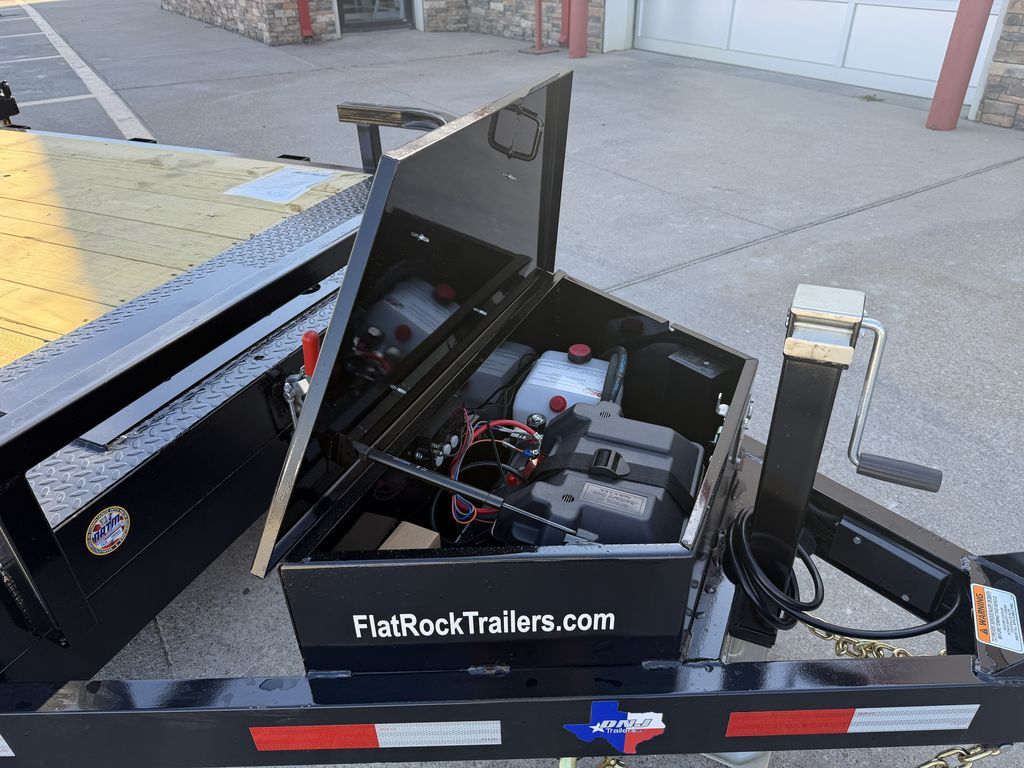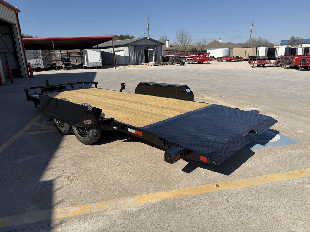 OPTIONAL ROCK GUARD INSTALLATION: $475 Without Rock Guard: $6,999 Rock Guard Installed: $7,474 20’ x 83 in 10K Tilt Car Hauler (WIRELESS TILT SYSTEM) 16’ Treated Wood Deck w/ 4’ ATP Steel Dovetail 2 x 5,200 lb. EZ Lube Axles (Brakes on Rear) 2 5/16 in Adjustable Coupler (Upgraded) 7K Drop Leg Jack 10 Stake Pockets 4 D Rings 5 in Channel Wrapped Tongue (Upgraded) 4 in Channel Full Frame (Upgraded) Cross Members on 16 in Centers Wireless Remote / Corded Remote (Included) Solar Panel / 110 Built in Charger (Upgraded) Diamond Plate Steel Fenders FOLD DOWN FENDER DRIVERS SIDE ST 225 75 R15 in Radial Tires Spare Tire Mount (Mount Only) LED Flush Mounted Lights 3 Bar Rear Center Light Treated Wood Floor Empty Weight: 3,175 lbs. GVWR: 9,995 lbs. Carrying Capacity: 6,820 lbs.