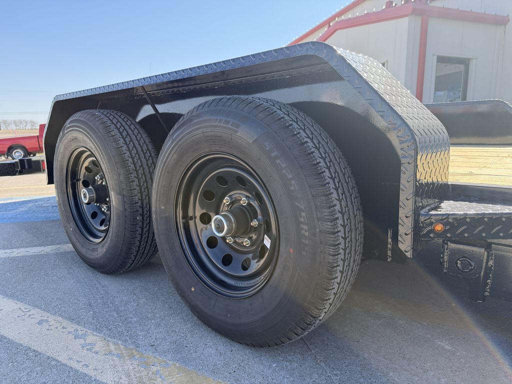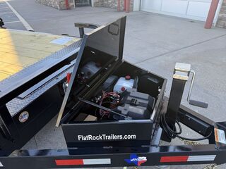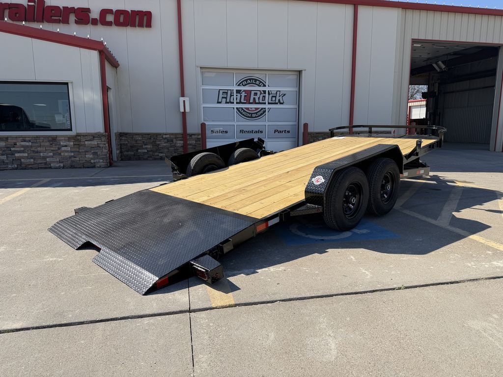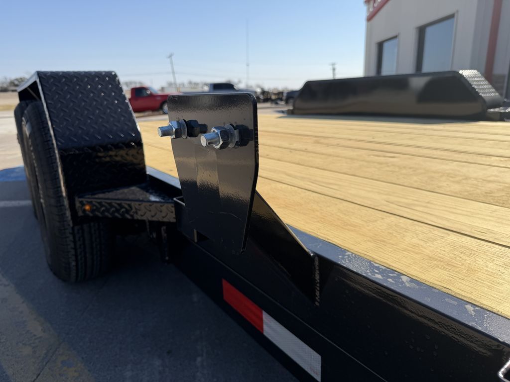 OPTIONAL ROCK GUARD INSTALLATION: $475 Without Rock Guard: $6,999 Rock Guard Installed: $7,474 20’ x 83 in 10K Tilt Car Hauler (WIRELESS TILT SYSTEM) 16’ Treated Wood Deck w/ 4’ ATP Steel Dovetail 2 x 5,200 lb. EZ Lube Axles (Brakes on Rear) 2 5/16 in Adjustable Coupler (Upgraded) 7K Drop Leg Jack 10 Stake Pockets 4 D Rings 5 in Channel Wrapped Tongue (Upgraded) 4 in Channel Full Frame (Upgraded) Cross Members on 16 in Centers Wireless Remote / Corded Remote (Included) Solar Panel / 110 Built in Charger (Upgraded) Diamond Plate Steel Fenders FOLD DOWN FENDER DRIVERS SIDE ST 225 75 R15 in Radial Tires Spare Tire Mount (Mount Only) LED Flush Mounted Lights 3 Bar Rear Center Light Treated Wood Floor Empty Weight: 3,175 lbs. GVWR: 9,995 lbs. Carrying Capacity: 6,820 lbs.