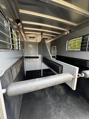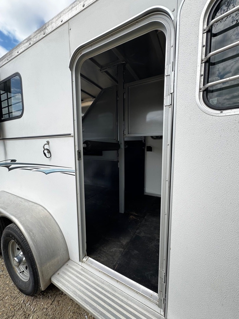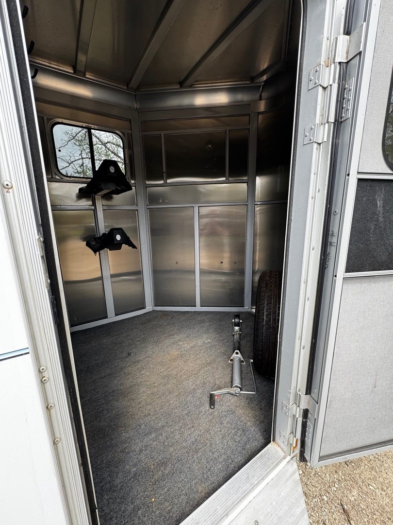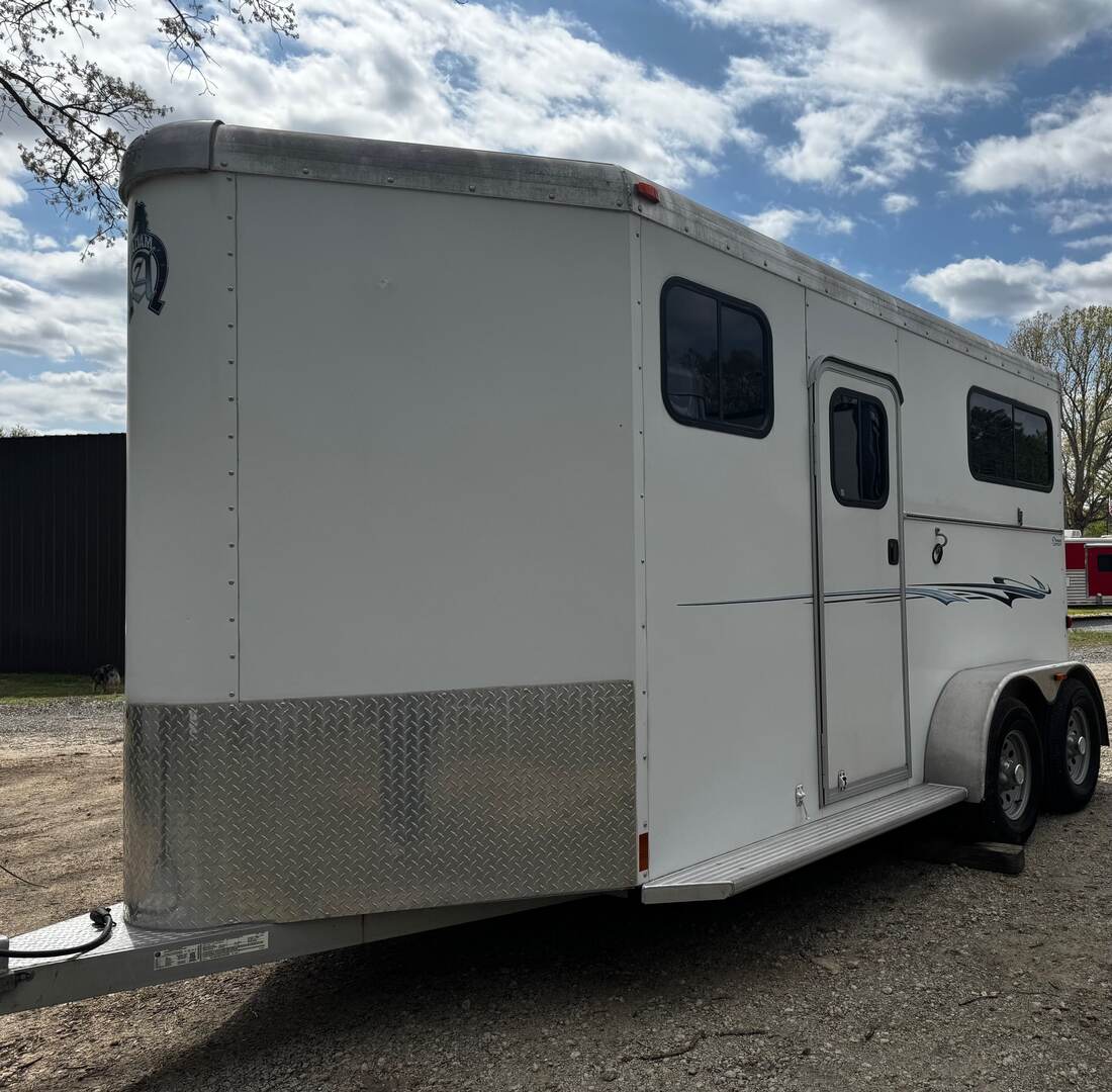 The 2012 Adam Trailer 2H, located in Rockwell, NC, offers a dependable solution for your horse transportation needs. With its sturdy aluminum frame and a bumper pull hitch type, this used trailer ensures ease of towing and durability. The white color maintains a clean appearance while on the road, and the dual-axle setup supports a stable, smooth ride. This model features a convenient ramp rear door that simplifies the loading and unloading process, making it less stressful for both the horses and their handlers. The interior is designed to comfortably hold 2 horses, safeguarding their well-being during transit. The trailer’s GVWR is set at 7000 lbs, indicative of its robust construction and capacity for both short and long hauls. Whether you’re headed to a show or transporting livestock, the 2012 Adam Trailer 2H is ready to perform. Visit us in Rockwell, NC or call to check availability.