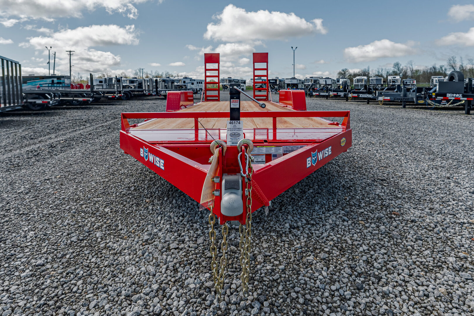 View Inventory: https://leonardtrailers.com/inventory/46174 Stock #46174 – New 2026 Bwise EH20-10 Equipment Trailer (Red) Durable and dependable, this Bwise equipment trailer is designed for hauling mid-size equipment with confidence and ease. Key Specifications: Size: 82” Wide x 20’ Long GVWR: 9,990 lbs Frame: 6” Channel Main Frame Axles: (2) 5,200 lb Super Lube Tandem Axles w/ Electric Brakes Tires: ST225/75R15D Radial on Black Mod Wheels Coupler: 2-5/16” Adjustable Jack: 8K Drop Leg Jack Features: 5’ Heavy-Duty Ladder Ramps 2” Pressure-Treated Wood Decking Reliable and ready for work—perfect for transporting skid steers, compact tractors, and light equipment. Financing Available | Trades Welcome | Nationwide Delivery Options We believe these specifications to be accurate. Any discrepancies are unintentional. Please verify all information with a sales associate prior to purchase. Stock Number:46174
