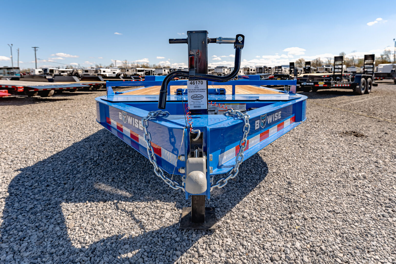 View Inventory: https://leonardtrailers.com/inventory/46170 Stock #46170 – New 2026 Bwise EF20-14-HD Equipment Trailer (Blue) Heavy-duty and versatile, this Bwise equipment trailer is designed to handle tough hauling jobs with ease. Key Specifications: Size: 83” Wide x 20’ Long GVWR: 15,400 lbs Frame: 8” I-Beam Main Frame Axles: (2) 7,000 lb Super Lube Tandem Axles w/ Electric Brakes Tires: ST235/80R16E Radial on Black Mod Wheels Coupler: 2-5/16” Adjustable Jack: 12K Drop Leg Jack Features: 3’ Self-Cleaning Dovetail 3’ Full Width Heavy-Duty Leveling Ramps (6) Weld-On D-Rings Integrated Winch Mount 2” Pressure-Treated Wood Decking Built tough and ready to work—ideal for hauling skid steers, mini excavators, and other equipment. Financing Available | Trades Welcome | Nationwide Delivery Options We believe these specifications to be accurate. Any discrepancies are unintentional. Please verify all information with a sales associate prior to purchase. Stock Number:46170