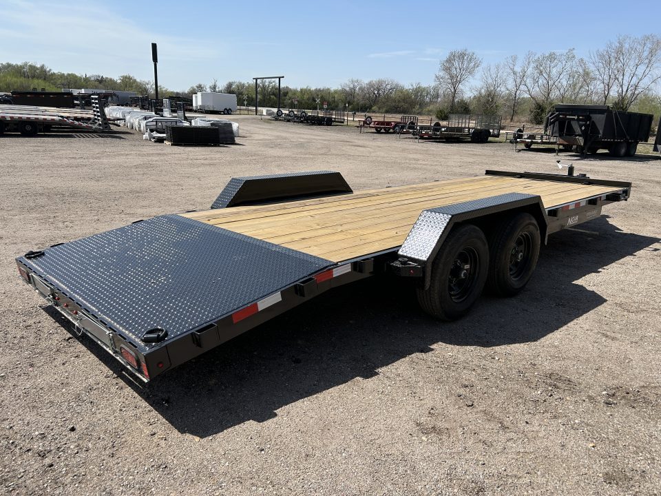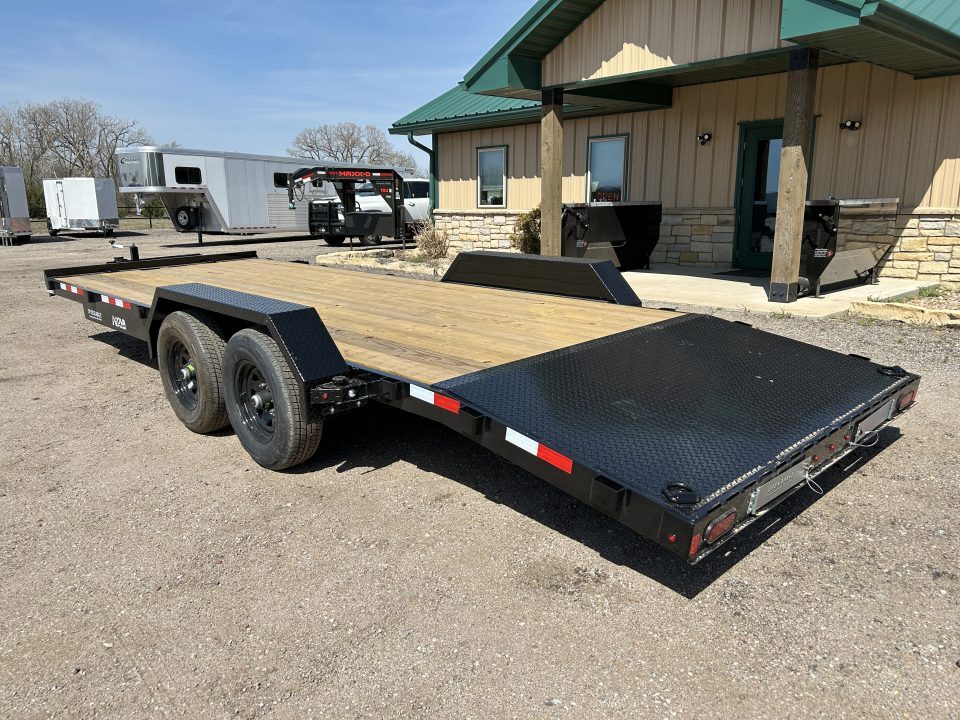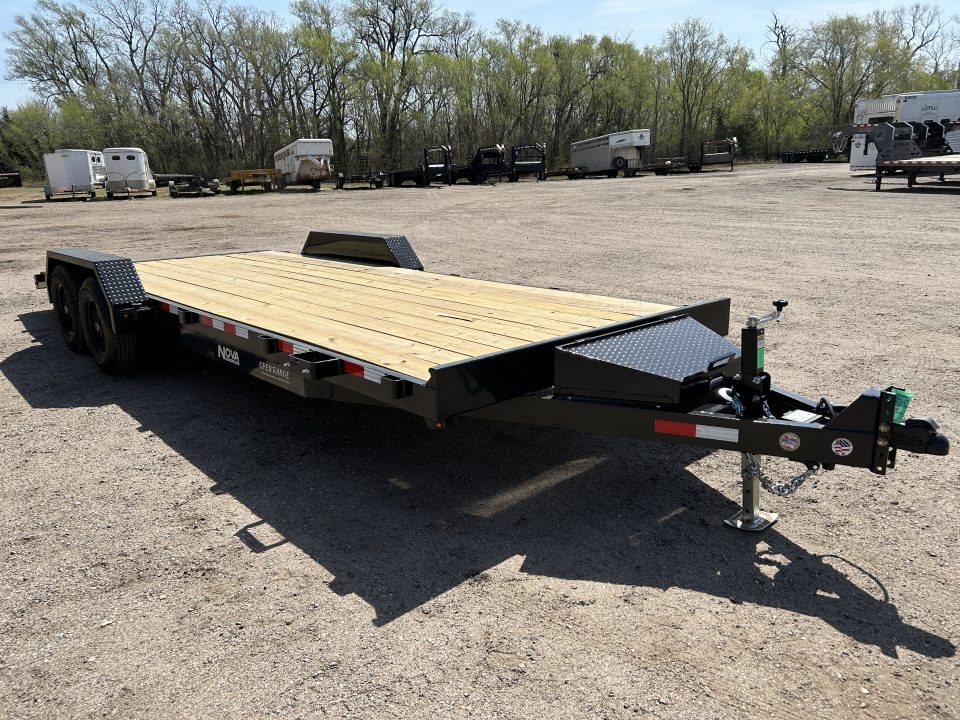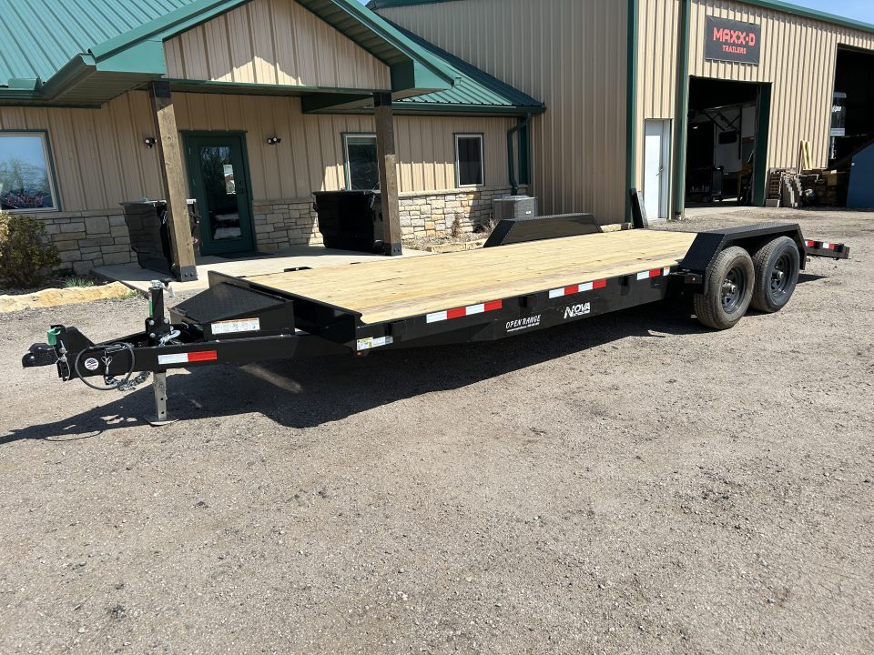 2026 MIDSOTA NOVA Car Hauler 82”X 22’ GVWR 9990 2- 5.2K Electric Brake Axles Spring Suspension 18’ Flat Deck With 4’ Dovetail Slide In Ramps Steel Toolbox Mounted In Tongue Removable Fenders Color, Black