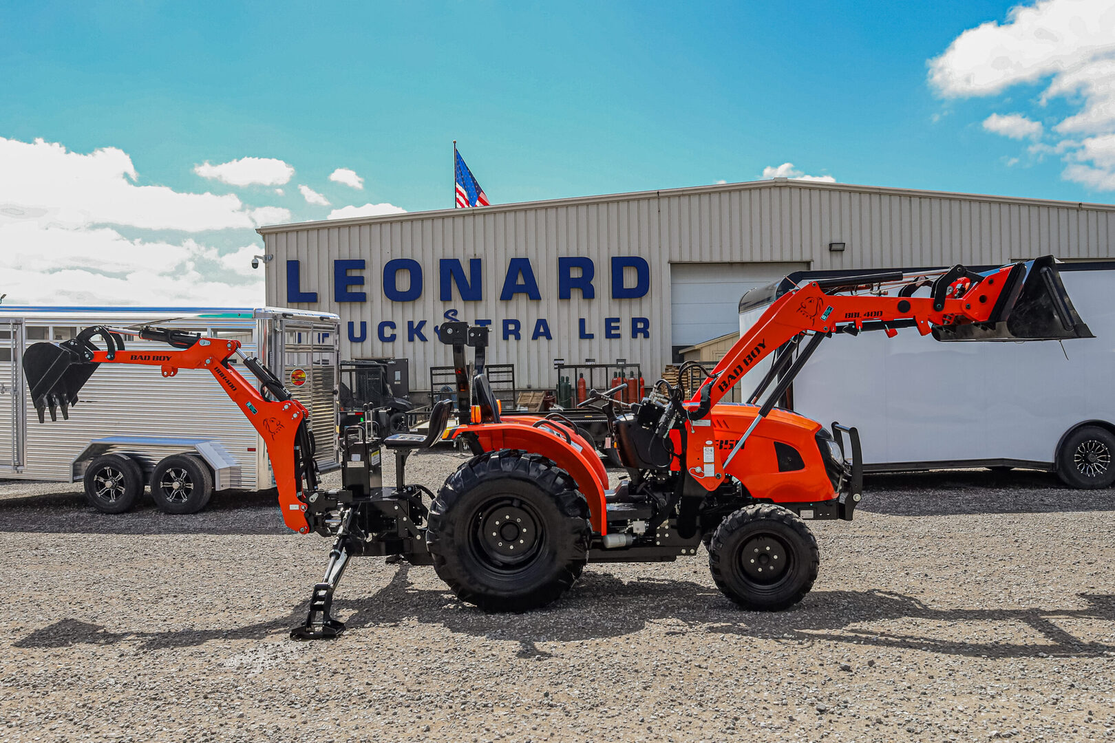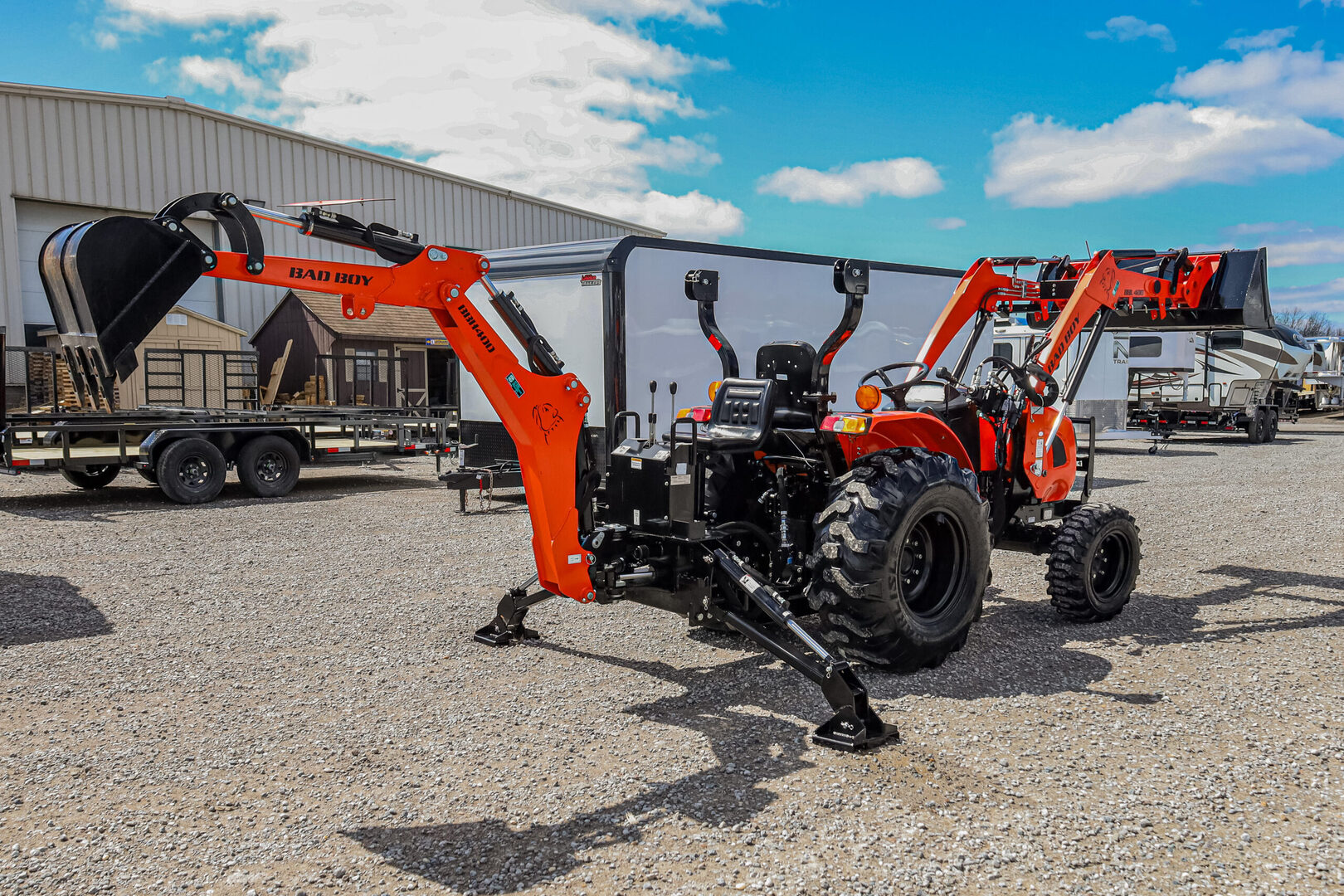 View Inventory: https://leonardtrailers.com/inventory/46180 Stock #46180 – Used Bad Boy 4035H Compact Utility Tractor w/ Loader & Backhoe The Bad Boy 4035H Tractor is a rugged 35HP compact utility tractor built for serious work. Equipped with a hydrostatic transmission, 4WD, and heavy-duty construction, this machine is ideal for property maintenance, landscaping, and light construction. Paired with a loader and backhoe, it’s a versatile, all-in-one workhorse. Engine 3-Cylinder, water-cooled diesel 35 HP Fuel Capacity: 7.1 gallons Drivetrain & Hydraulics 3-Range Hydrostatic Transmission (HST) 4WD with locking differential Hydrostatic power steering Dual pump hydraulic system (12.6 GPM total flow) Independent 540 RPM rear PTO PTO HP: 29.5 Loader (BBL400) & Backhoe (BBH400) Loader lift capacity: 2,200 lbs (at pins) Max lift height: 104” Bucket width: 62” Backhoe max dig depth: 92.2” Backhoe digging force: 4,380 lbs Dimensions & Weight Weight: ~3,164 lbs Wheelbase: 65.7” Length: 134.88” Width: 56.7” Key Features Hydro Max system automatically adjusts RPM under load Skid steer-style quick attach loader Heavy-duty cast iron axles & metal body panels Available in open station or cab (heat & A/C on cab models) We offer outstanding financing options, accept trades, and can arrange nationwide NO HASSLE delivery! Inquire today at (888) 333-6613. We believe these specifications to be accurate. Any discrepancies are unintentional. Please verify all information with a sales associate prior to purchase. Stock Number:46180