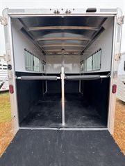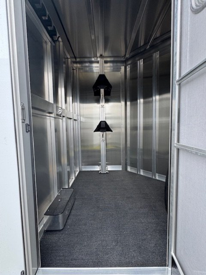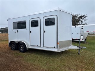 2025 Exiss 2H 724 STR--This straight load trailer will not disappoint. Horse area has padded divider, Padded chest and butt bars, a roof vent for each horse, aluminum floor with mats and escape doors at each stall. The dressing room has (2) adjustable saddle racks, (6) bridal hooks, brush box and a matching full size spare.