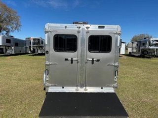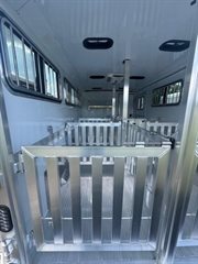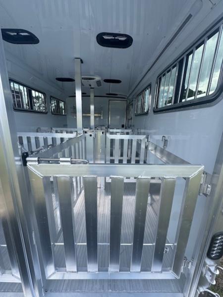 Convertible 50/50 pen system, escape door, 3' tall rear ramp and roof vents for every pen. interior and exterior lights are all LED. Dressing room is 4' and has a walk through door to livestock area.
