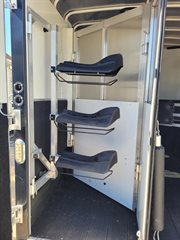 Hoosier-Maverick 26ft goose neck 3 stall horse trailer with tack room or can be finished into a living quarters. Great condition, newer tires and battery. Electric trailer jack, 3 saddle stands, am/fm cd player, awning and interior/exterior lights asking $19,500