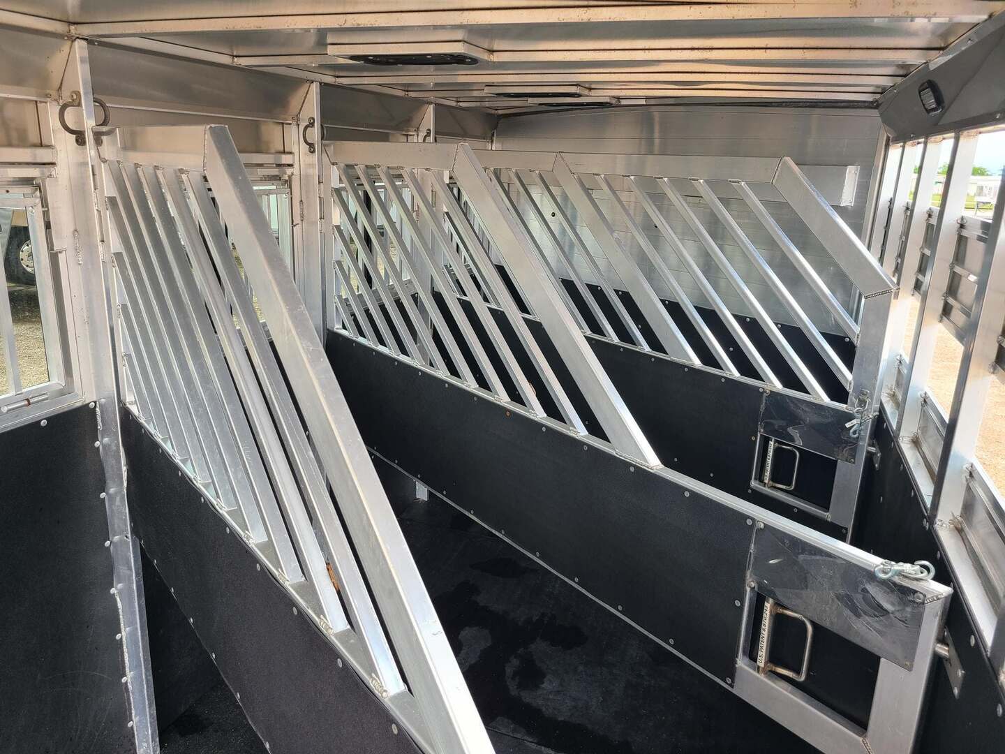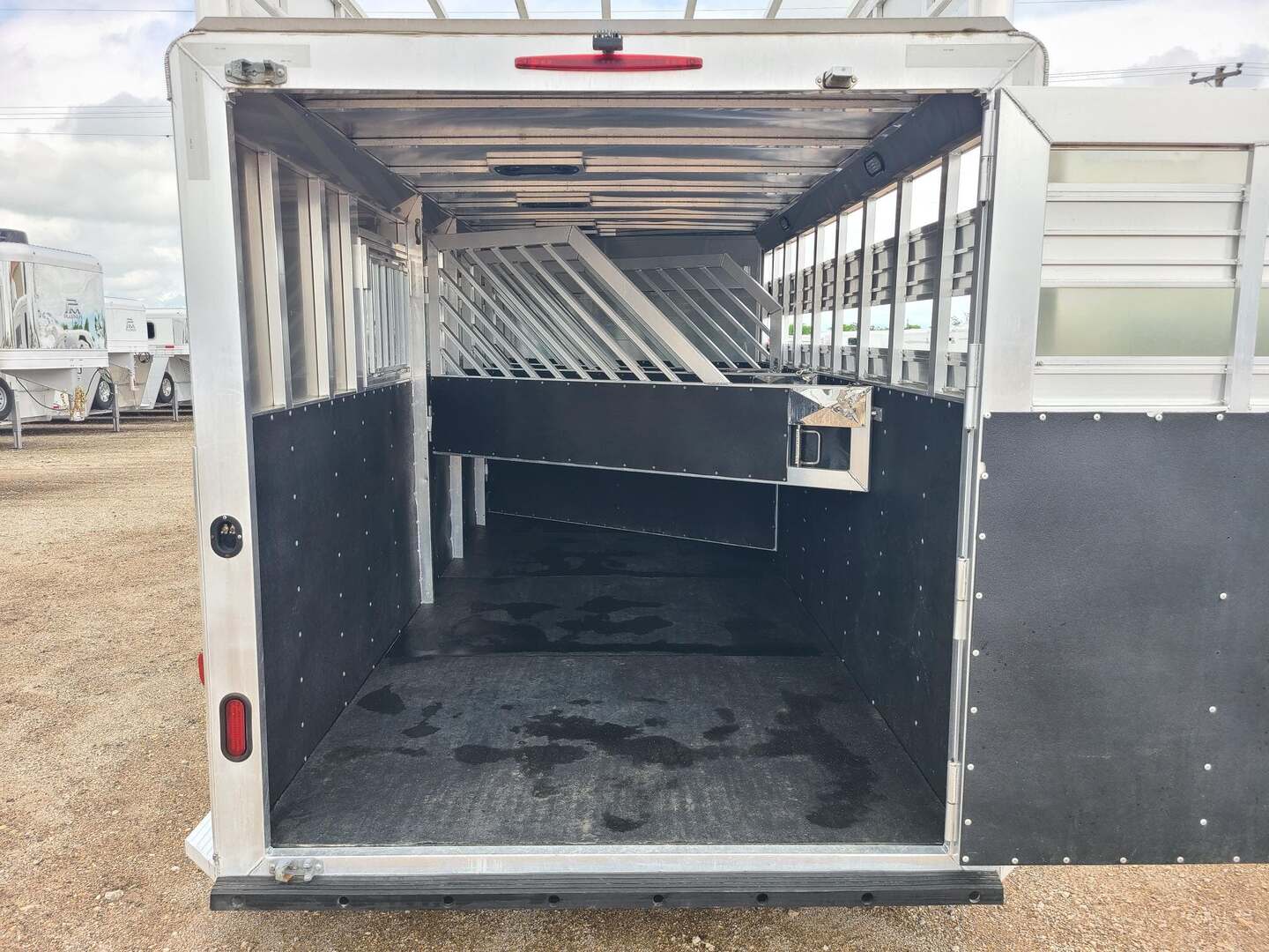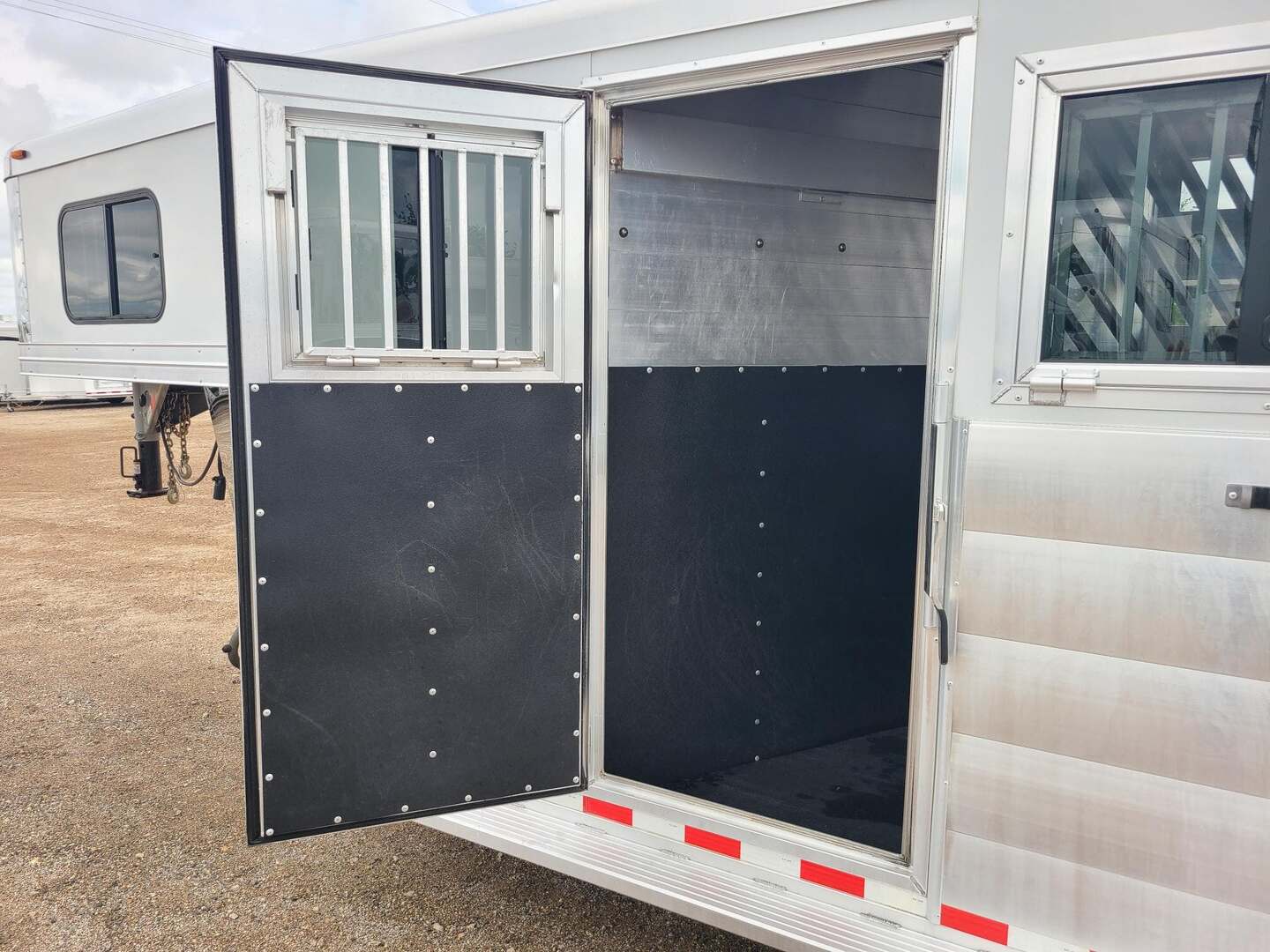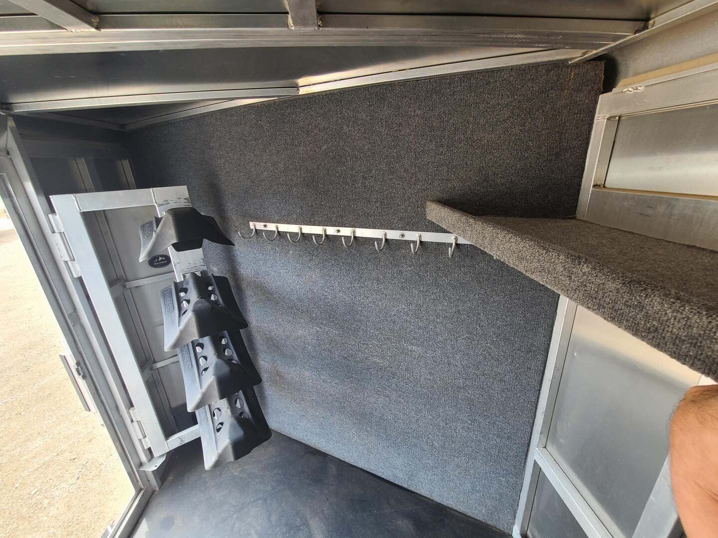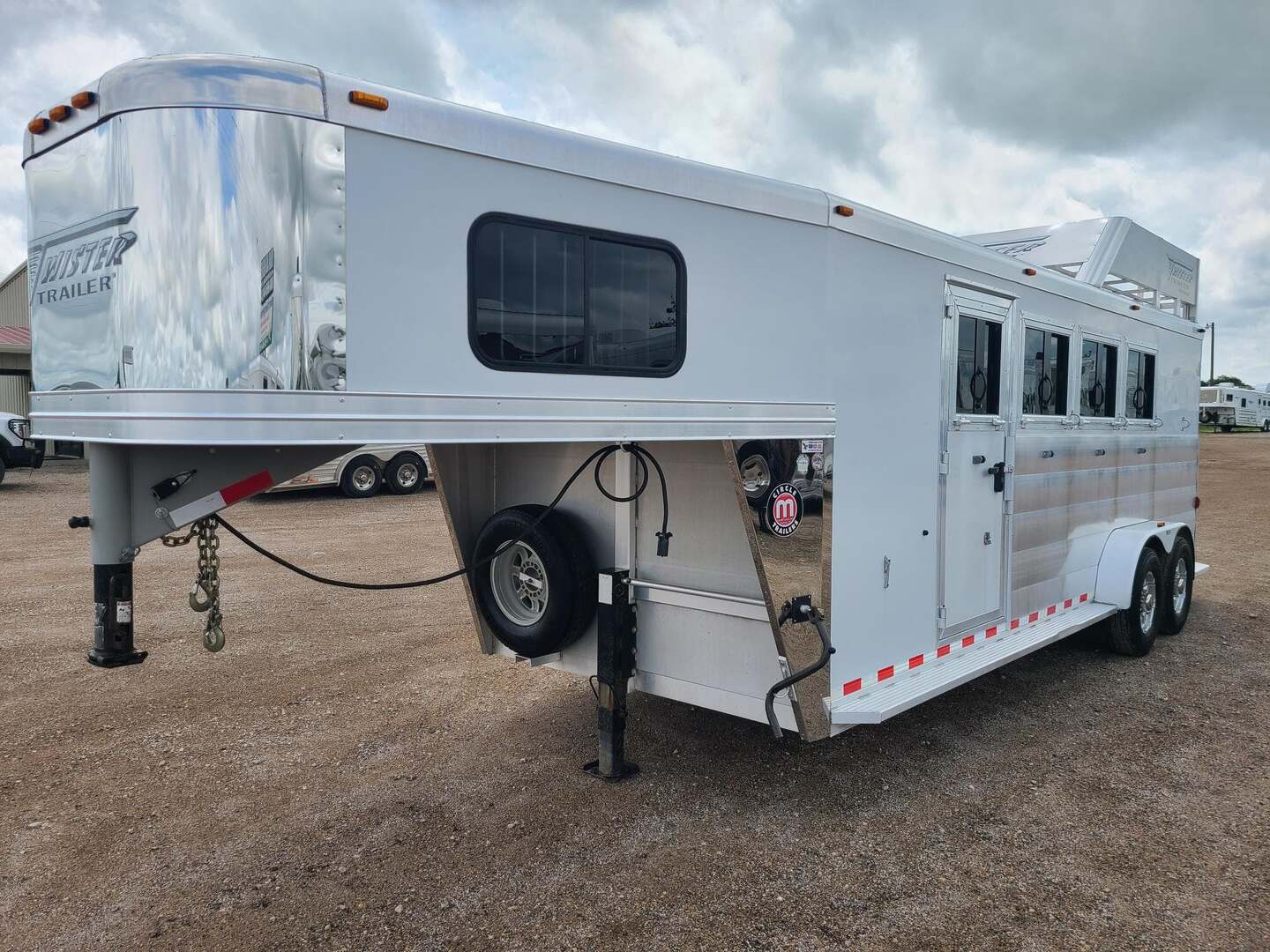 2019 Twister 4 Horse 7x21x7 tall Drop down windows on head side Drop down window bars Escape door on first stall Flow through dividers, stud divider on first stall Air cracks on rump wall and rear gate Aluminum wheels 6’ hay rack and ladder Swing out saddle rack in front dressing room 25 gallon water tank behind saddle rack Boot box at drop wall Shelf on curb side Swing out blanket bars on tack door Carpeted bulkhead wall with bridle hooks