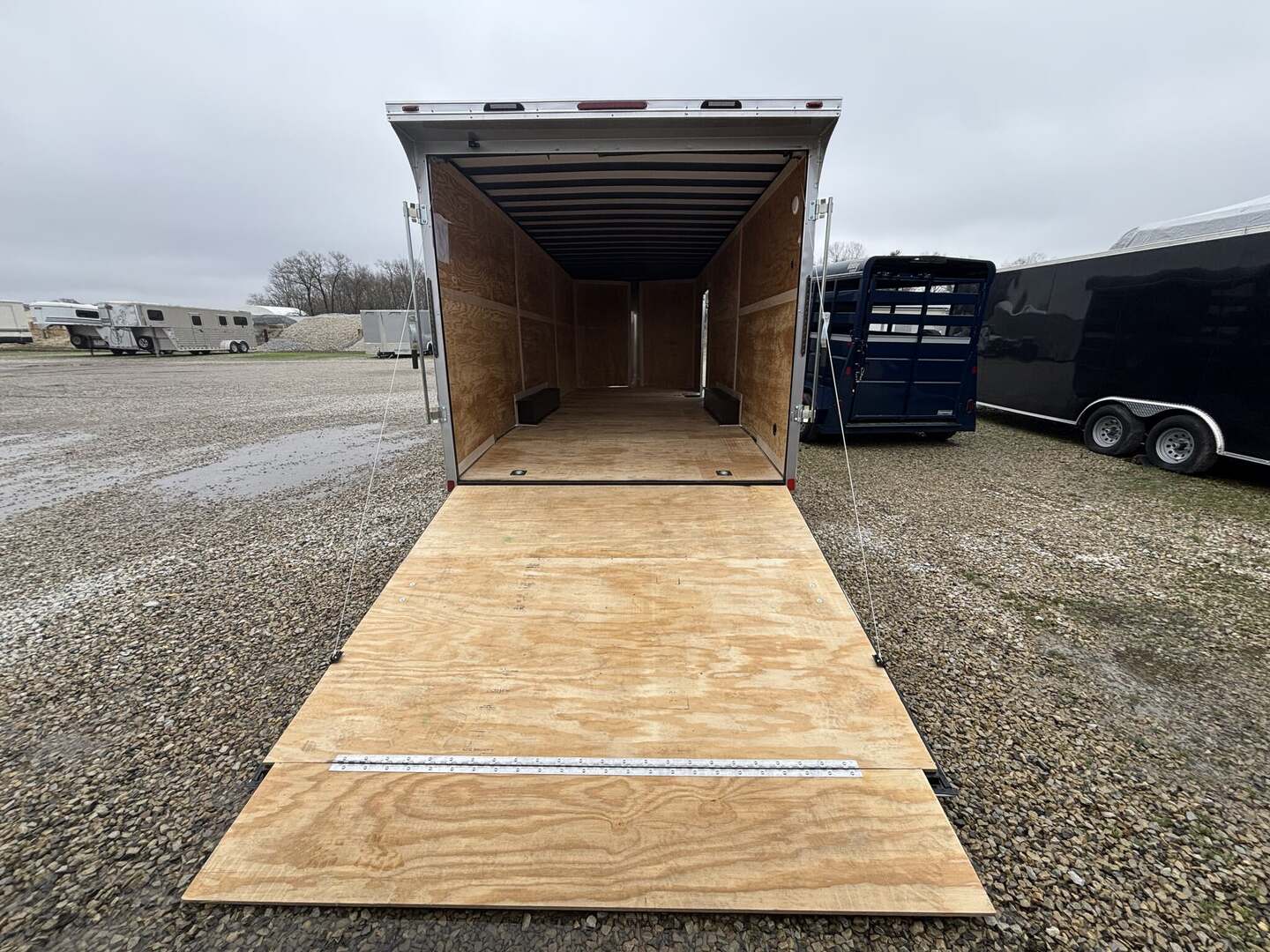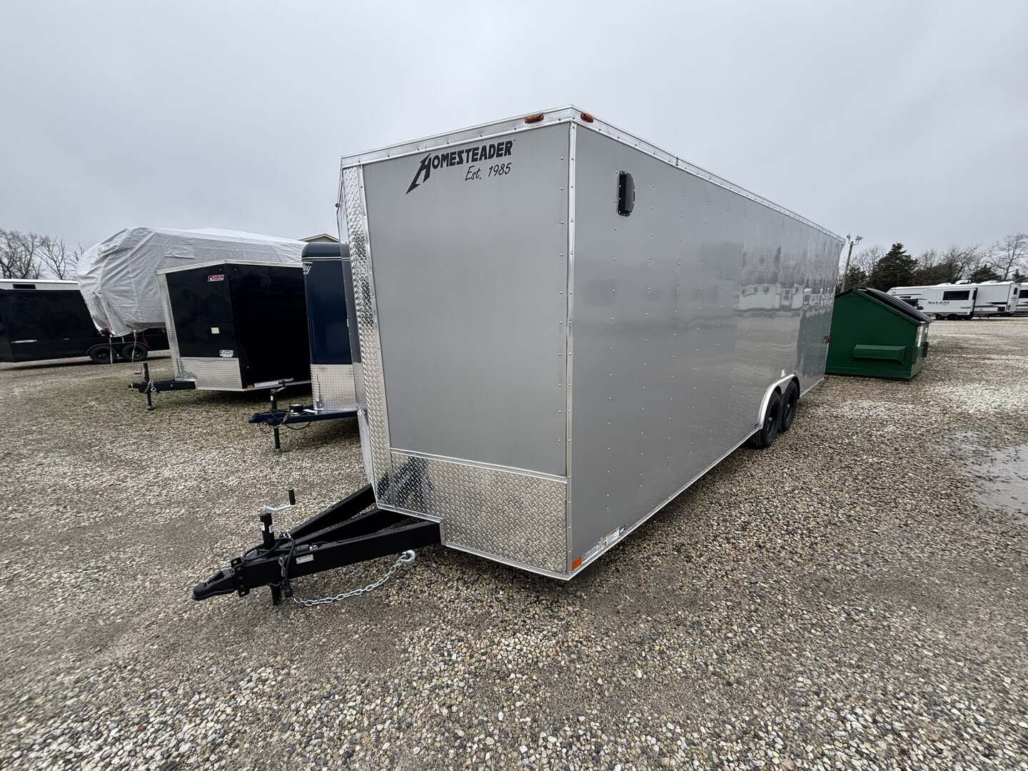 Homesteader Intrepid 2026 Cargo Trailer – Enclosed 2-Axle Hauler for RV Enthusiasts 5200-pound spread tandem axles 2/6 tubed steel framing  60” tongue with adjustable coupler, 7-foot-tall interior  rear spoiler with loading lights in it .080 polycore lining The 2026 Homesteader Intrepid cargo trailer is a fresh, in-stock option designed for versatility and durability. This new arrival delivers a rugged, weather-tight enclosure ready to support your RV lifestyle, mobile business, or event needs. With a spacious interior floorplan and a sturdy aluminum frame paired with a steel substructure, the Intrepid combines practicality with reliable performance for long road trips or on-site operations. Packaged as a bumper-pull trailer, it’s easy to tow behind a wide range of vehicles while offering ample interior space for customization. Key specifications at a glance Brand: Homesteader Model: Intrepid Year: 2026 Type: Cargo trailer / enclosed trailer Classification: Cargo/Concession trailer Stock #: 5059 Condition: In stock, New arrival Exterior color: White Construction: Aluminum with steel frame Flooring: Wood Axles: 2 Hitch: Bumper pull Floorplan: 8 ft 6 in wide × 24 ft interior length (IH) Overall length: 28 ft 6 in Width: 8 ft 5 in Height: 7 ft Enclosure: Enclosed Benefits for RV lovers and mobile entrepreneurs Versatile space that can be outfitted for gear storage, a mobile concession, or a custom RV conversion Compact yet spacious floorplan that balances towability with usable cargo area Durable construction designed to withstand road travel and varying weather Ready-to-customize interior with a wood floor offering a solid foundation New arrival and ready for quick delivery to support your schedule Why choose the Intrepid for your next journey Trusted Homesteader brand with a solid reputation for durable cargo trailers Modern 2026 build that pairs reliability with ease of ownership Enclosed enclosure protects cargo from the elements, dust, and debris Compact, tow-friendly design ideal for travel trailer enthusiasts and active vendors Availability and how to buy Stock status: In stock and ready for delivery Stock number: 5059 Ideal for immediate purchase to support your travel or business needs Contact us to schedule a viewing, request more photos, or reserve this trailer
