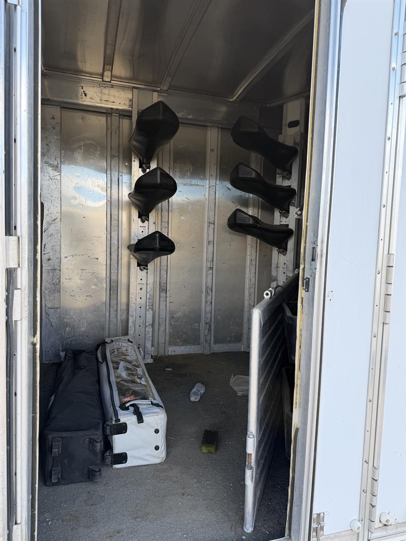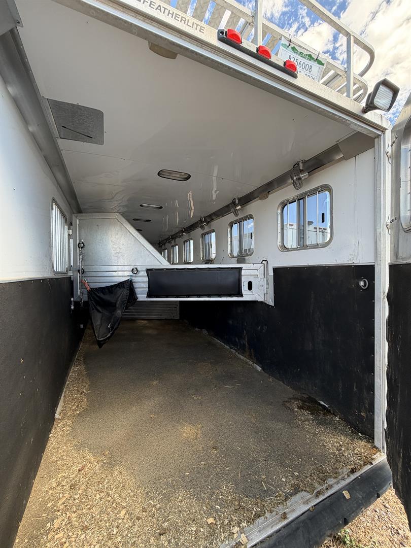 I have a 2004 Featherlite six horse slant load for sale. Upgraded to a new one. Selling this one. Originally a Colorado trailer. Upgraded to hydraulic lift. Fans in stalls. Feel free to ask questions. Decent shape. Surface rust in spots. Floor solid. Tires good. Hay rack on top. Large dressing room with screen door. 7 feet wide. 7 feet tall.