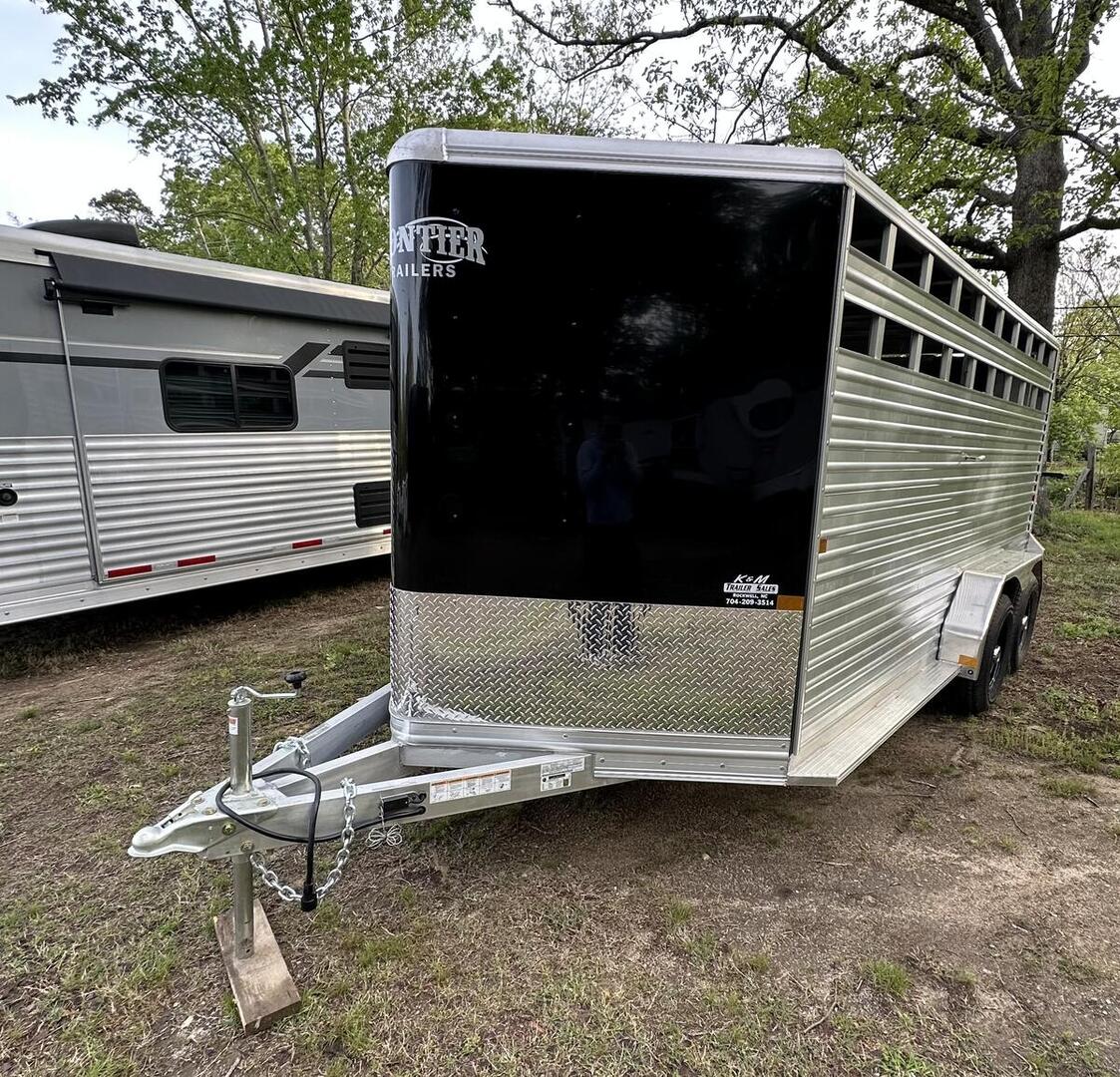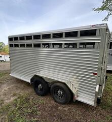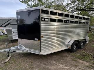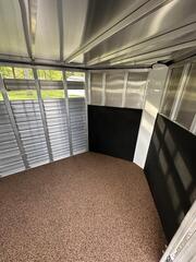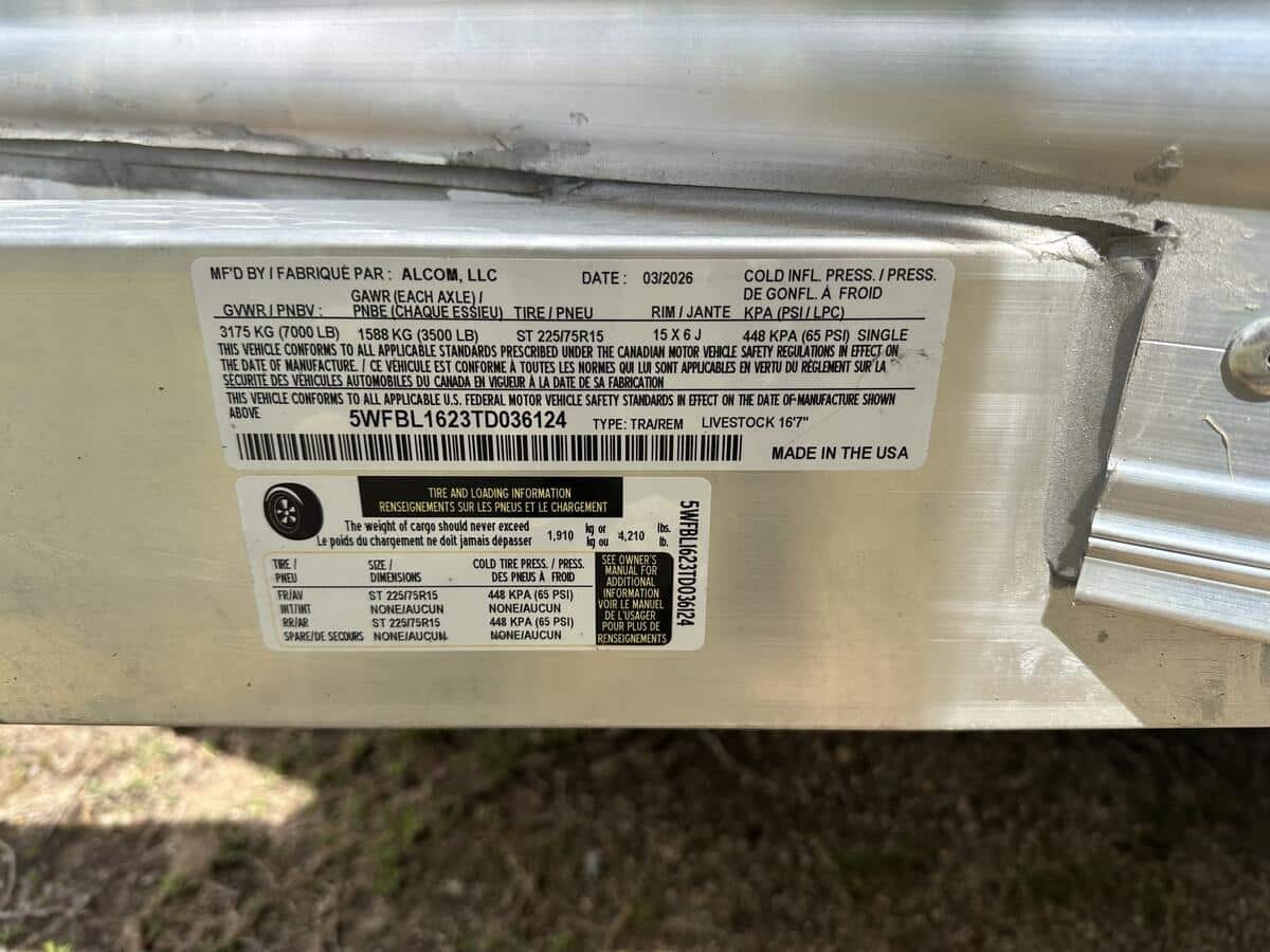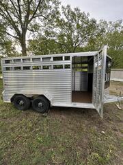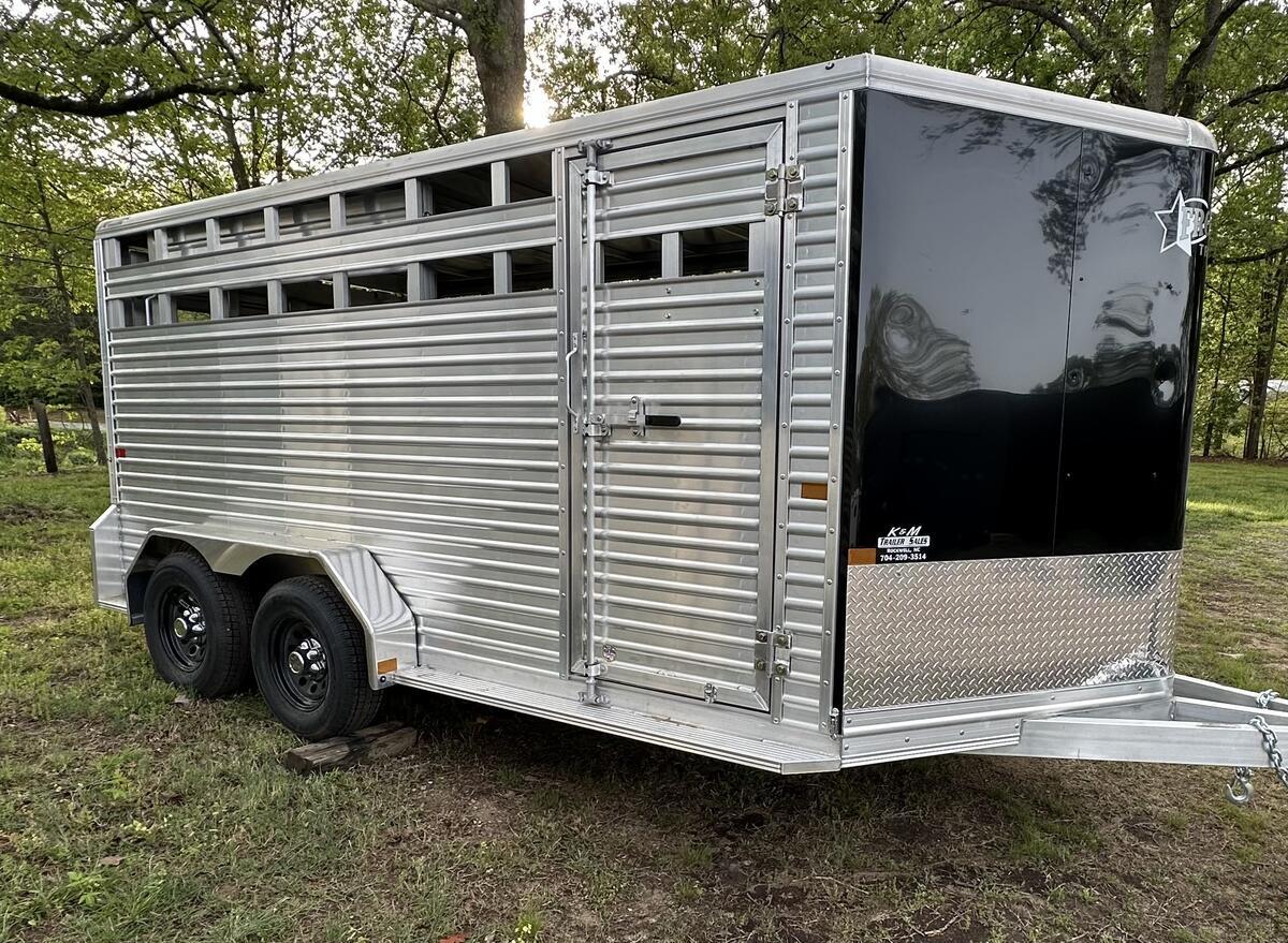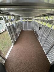 All-aluminum construction for lightweight durability and long-lasting performance. Features a V-nose design, extruded aluminum floor, full swing rear gate with slider, and side access door for easy loading. Equipped with spring axles and electric brakes for a smooth, reliable haul. Perfect for cattle, horses, or everyday farm use This trailer is also equipped with Hoof Grip flooring, it is slip resistant, shock resistant. It improves comfort and cleanliness