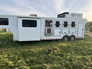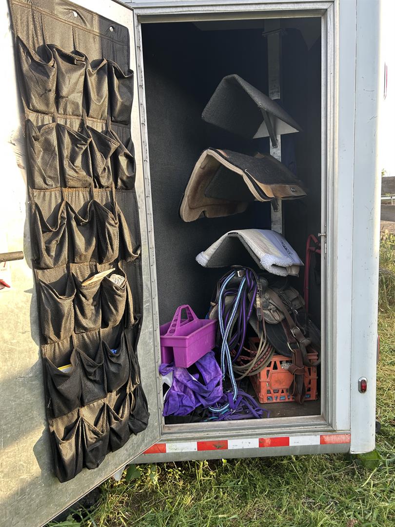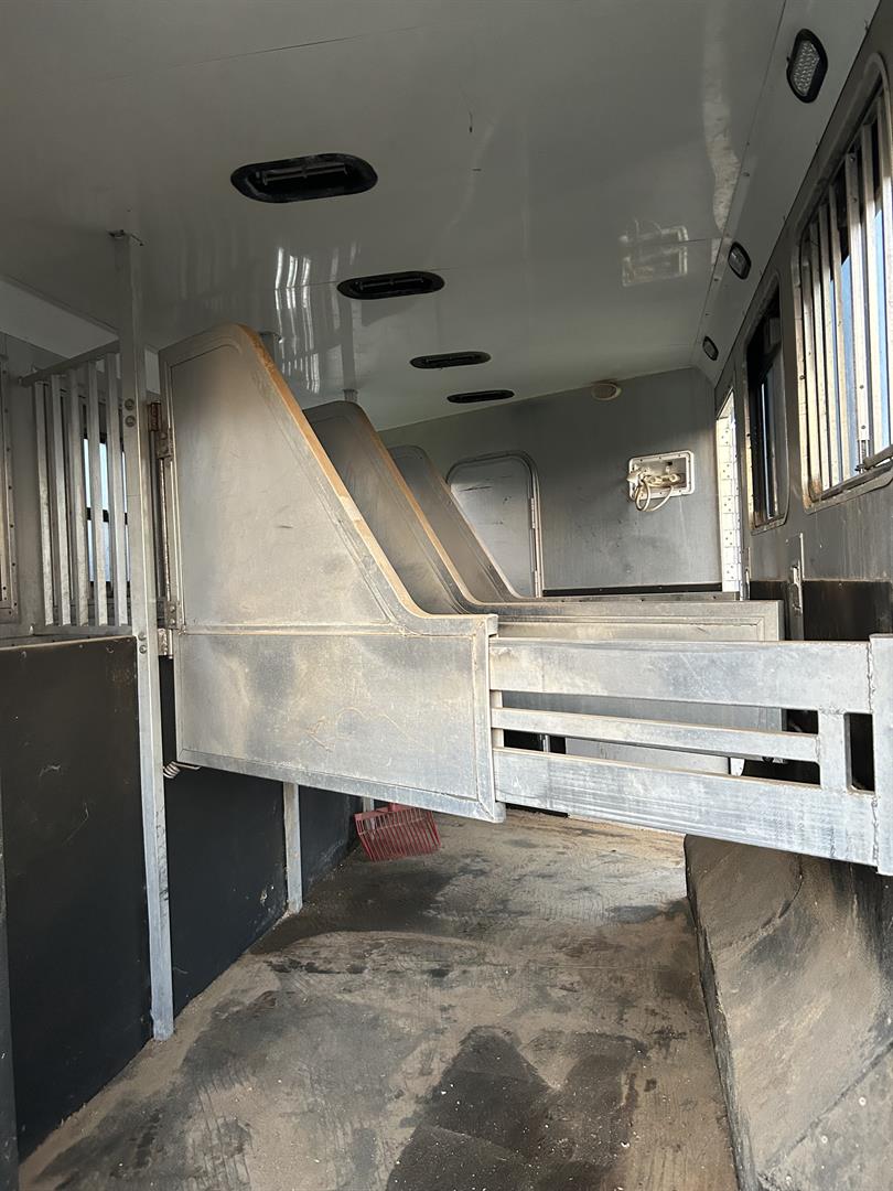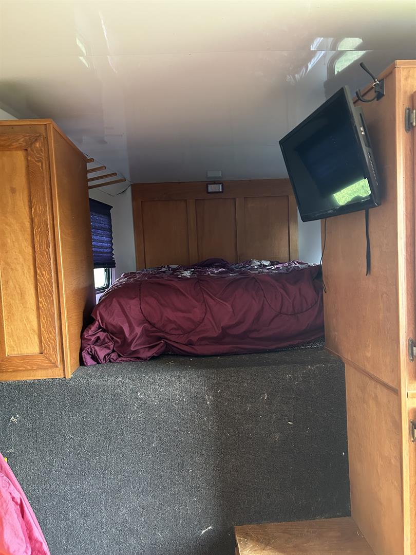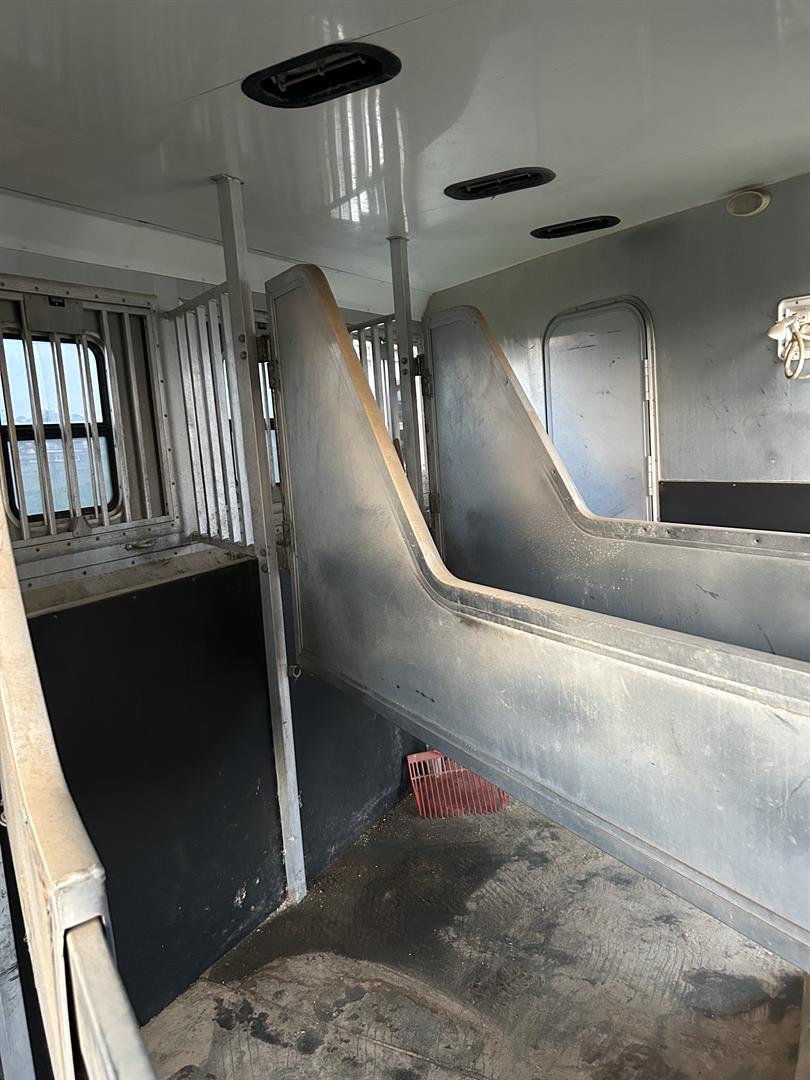 Everything works in LQ area. AC/ propane heat. Propane stove. TV. Large fridge with freezer. Bunk beds that turn into couch. Toilet with a cowboy shower in first stall of horse part. Plenty of storage in LQ part as well as under the mangers in the horse part. This trailer hauls great and is really roomy for horses. I’ve easily put very large warmbloods in with room to spare.