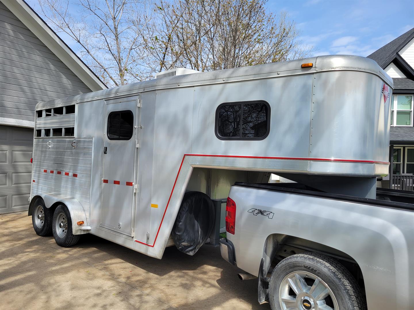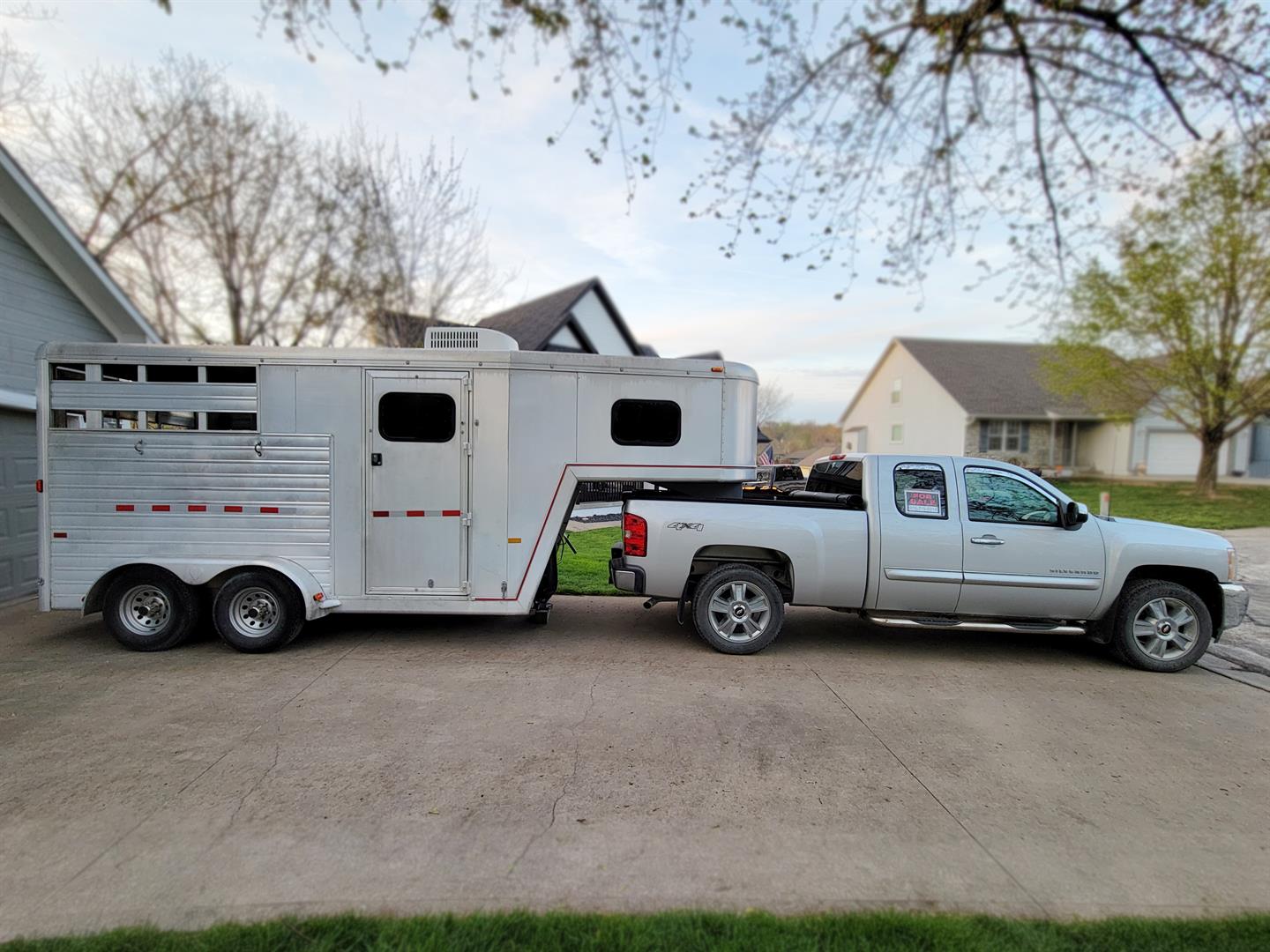 2002 Hart Gooseneck 2 Horse Trailer + 2012 Chevy Silverado 1500 4WD Extended Cab Pick Up Truck. Asking $14,500 for the trailer, $16,500 for the truck, or buy both for $30,000.