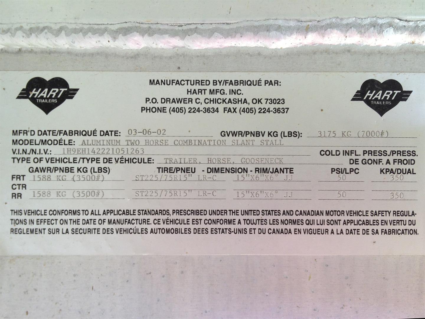 2002 Hart gooseneck 2 horse slant load trailer