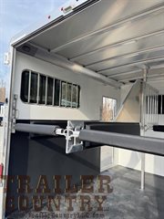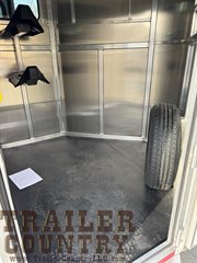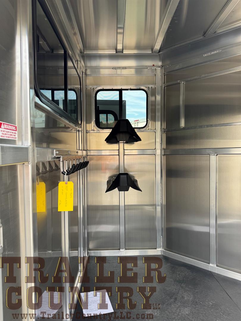 - interior lights in horse area and dresser- 4′ dressing room includes 3 sliding windows, 2 saddle racks, bridle hooks, mats ILO carpet on the floor, spare tire mounted inside