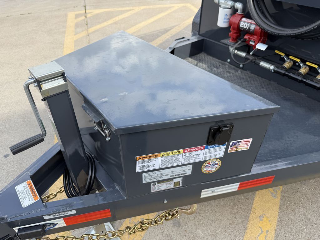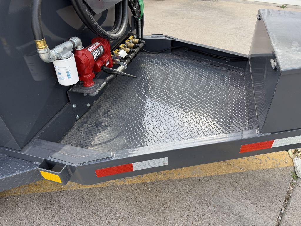 5 x 8 Diesel Tank Trailer w/ 500 Gallon Tank 5 x 100 Gallon Independent Fuel Cells NO HAZMAT REQUIRED 2 x 5,200 lb. EZ Lube Axles Fill Rite Pumping System 20 GPM Electric. Fill Rite Pump w/ 20’’ Hose / Auto Nozzle / Filter Kit / Charging Kit w/ Battery / Trickle Charger / Toolbox 5 x 100 GAL. Smooth Plate Tank 7 Gauge Floor & Ends 10 Gauge Body Double Eye Spring Suspension 15 in Black Mod 6 Hole Wheels ST225/75/R15 Radial Tires 5 in 6.7 lb. Channel Frame 5 in 6.7 lb. Channel Wrapped Tongue 2 5/16 in Bulldog Style Ram Coupler 7k Drop Leg Jack Double Broke Diamond Plate Fenders 1/2 in Drain in the Back Centered 5 x 2 in Fill Ports on Top of Tank with Ventable Cap 12 in Extended Tongue with Extra Supports Ready for DEF Setup (Fits 58 Gallon Tank) 7 Way Plug Flush Mount LED Lights 1 Coat of Primer and 2 Coats of Polyurethane Paint   Empty Weight: 3,900 lb. GVWR: 9,995 lb. Carrying Capacity: 6,095 lb.