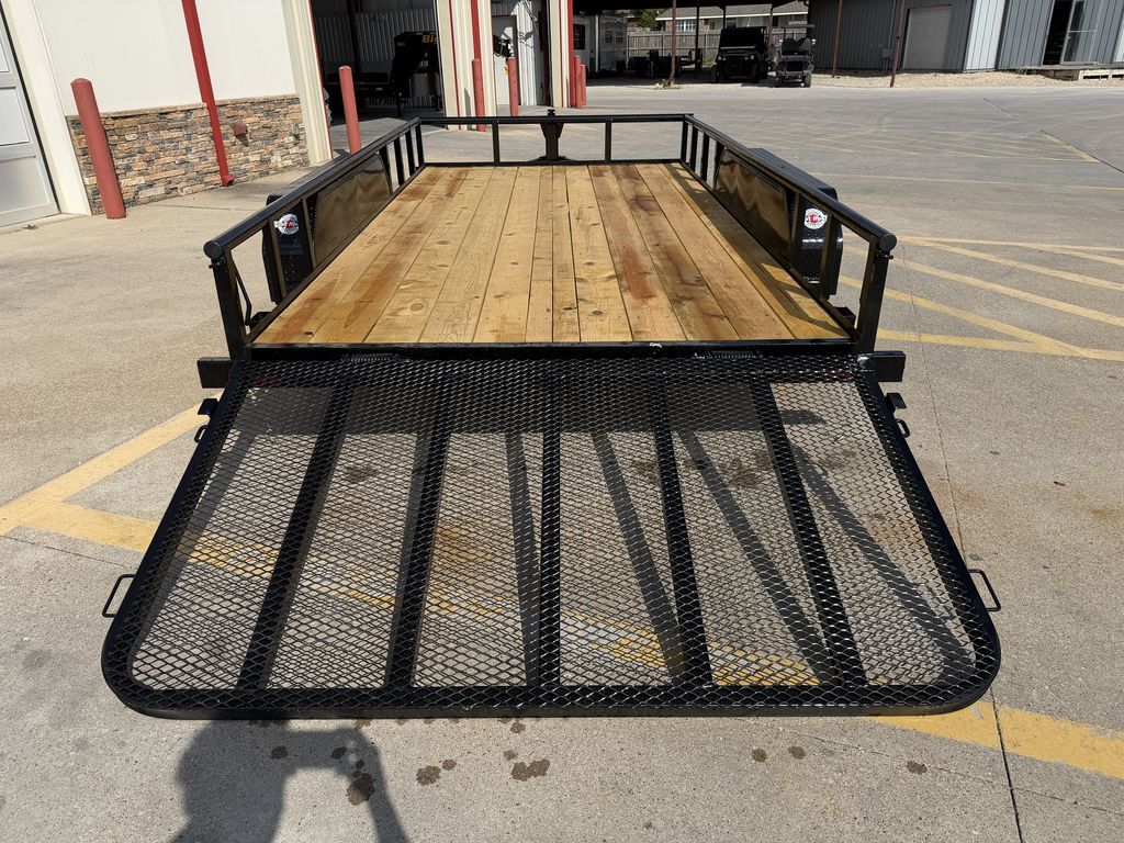 83 x 14’ Pipe Top Utility w/ Spring Assist Ramp Gate 2 x 3,500lb.Axles 2 in A Frame Ram Coupler Treated Wood Floor Engineered 4’ Spring Assist Rear Ramp Gate (UPGRADED) 7K Drop Leg Jack (UPGRADED) Diamond Plate HD Fenders (UPGRADED) Coiled Brake a Way (UPGRADED) ST205 75 R15 Radials Enclosed LED Lights H/D Front Spare Tire Mount Stake Pockets 2 in Pipe Top Utility 4 in Channel Tongue Empty Weight 1,460 lb. G.V.W.R. 4,495 lb. Carrying Capacity 3,035 lb.