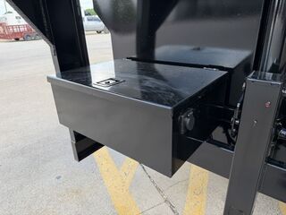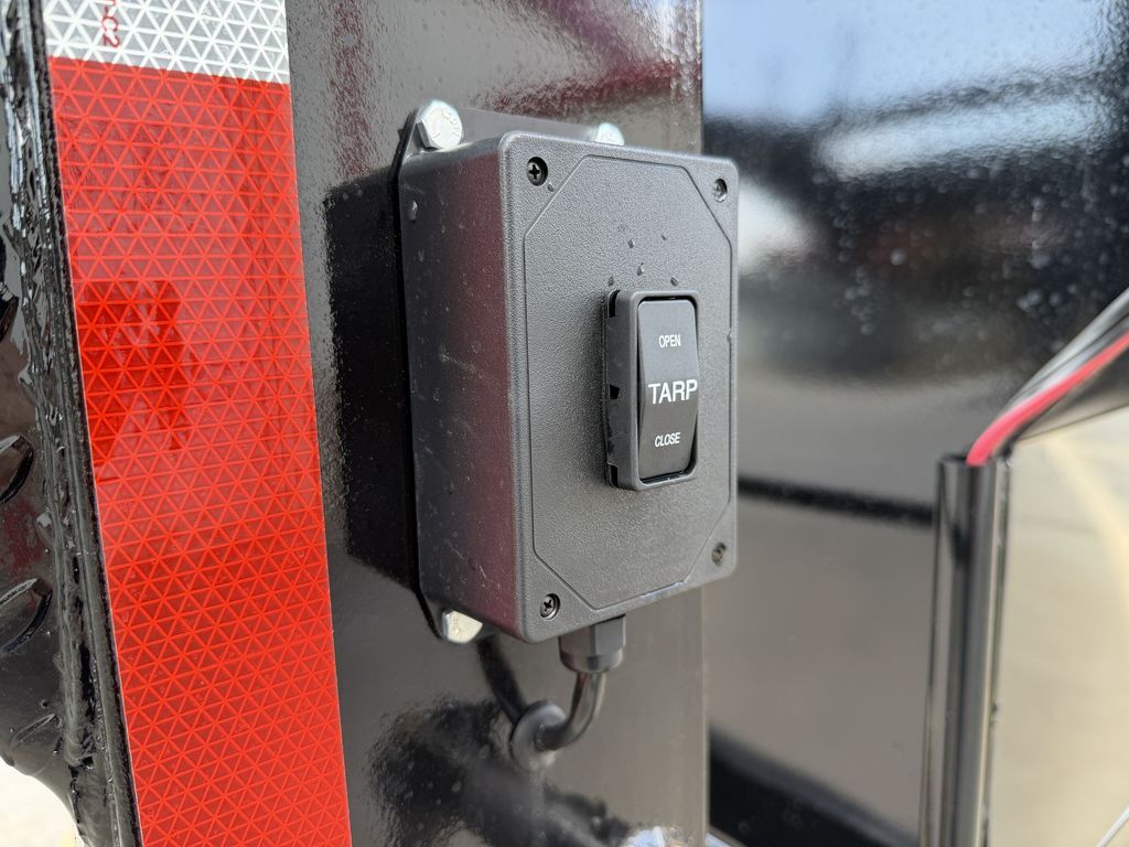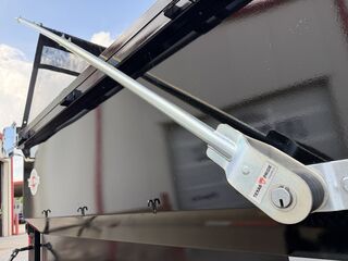 7’ x 16’ x 4’ Flare Side Dump Trailer ELECTRIC TARP SYSTEM HEAVY DUTY TUBE RAMPS 2 x 8,000 lb. EZ Lube 8 lug (Brakes on both axles) Heavy Duty Slipper Spring Suspension Tires: New ST235 85R16 LRE 14 Ply Radials) Main Frame: Full 6 in. channel Gooseneck Tongue: 8 in. Channel Risers and Beams Tilt Frame: 3 in. x 2 in. tubing Cross Members: 3 in. channel Bed Flooring: 1/8 in. thick sheet steel Bed Siding: 1/8 in. thick sheet steel Deck width: 82 in. Deck Length: 16’ Deck Height: Approximately 28 in. Side Wall Height: 48 in. Rear Doors: Double swing doors (open like barn doors) Battery: Group 24 deep cycle marine Pump: Electric over hydraulic (1.7 gpm) Controller: 15’ corded remote control Front locking toolbox contains battery and pump Hydraulics: Single 3 stage hydraulic cylinder (14,000 lb.) 2 5/16 in. Adjustable GN Coupler Two heavy duty safety chains Jack on Gooseneck: spring loaded drop leg Fenders: 14ga heavy duty tread plate Lighting: All flush mount or recessed lifetime LED Empty Weight 4,800 lb. G.V.W.R. 16,000 lb. Carrying Capacity 11,200 lb.