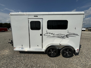 Homesteader Stallion Horse Trailer — Premium 14 Foot 2-Horse RV-Style Travel Trailer for Equestrian Enthusiasts Introducing the Homesteader Stallion, a premium horse trailer engineered for serious riders who demand safety, durability, and comfort on every trip. This 2026 Stallion model delivers an elevated travel trailer experience for equestrians, combining rugged construction with thoughtful features that keep your horses calm and secure whether you’re heading to a local stable or embarking on a cross-country adventure. With an eye-catching white aluminum exterior and a modern interior, the Stallion blends reliability with ease of maintenance, giving you confidence on the road and in the stall. Floor plan 214FB accommodates two horses and gear, measuring 14 feet in length, 7 feet in width, and an interior height of 7 feet 6 inches. Specifications & Key Features Type: Horse Trailer Model: Stallion Year: 2026 Length: 14 feet Width: 7 feet Height (interior): 7 feet 6 inches Gross Vehicle Weight (GVW): 7,000 lbs Dry Weight: 3,708 lbs Payload Capacity: 3,292 lbs Number of Horses: 2 Floor Type: Rubber Construction: Aluminum with Steel Frame Floorplan: 214FB Exterior Color: White Aluminum Towing: Bumper Pull with 2 5/16-inch Bulldog coupler Rear Doors: Double rear doors for easy loading Flooring & Interior: Seamless aluminum roof, polycor exterior siding, extruded rubber flooring, aluminum interior wall/ceiling liners Ventilation & Lighting: Dual roof vents, LED tail lights, tinted windows with bar guards Safety & Convenience: Padded stalls, removable stall divider, positive latching divider gates, exterior tie rings, saddle racks Exceptional Build Quality The Stallion stands out with its premium construction, including a seamless aluminum roof, durable polycor exterior siding, and extruded rubber flooring that resists rot and decay. The aluminum interior wall and ceiling liners deliver a bright, easy-to-clean environment while maintaining a lightweight, rugged frame. These elements translate into long-lasting performance and minimal upkeep, making this trailer a reliable partner for frequent travelers who value peace of mind on every journey. Why Choose the Stallion With an aerodynamic V-nose design and double rear doors, loading and unloading are smoother and safer, whether you’re a seasoned rider or new to trailer travel. The Stallion rides securely behind a 2 5/16-inch Bulldog coupler and trusted safety chains, ensuring confidence when towing. Practical features such as exterior tie rings, saddle racks, and well-ventilated stalls create a comfortable, functional space for horses and cargo alike. This in-stock, new arrival is offered with a sale-pending status, making now the ideal time to upgrade your equestrian transportation. For more information, contact Crossroads Trailers at 856-697-4497 or sales@crossroadstrailers.com.