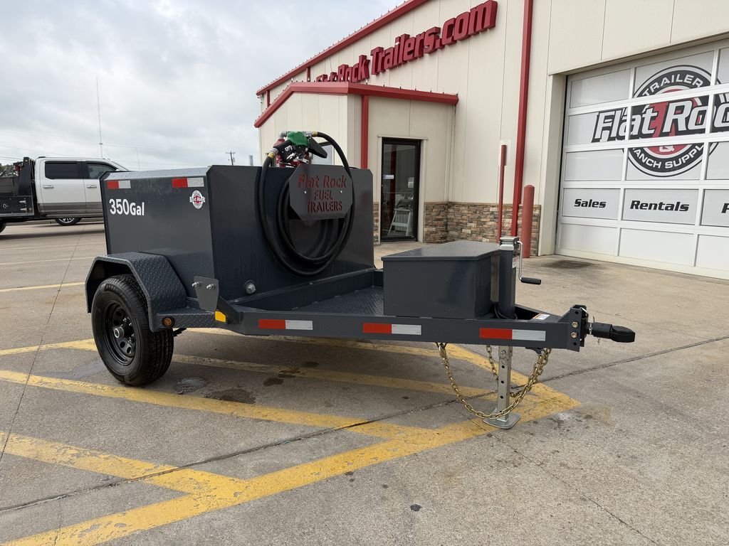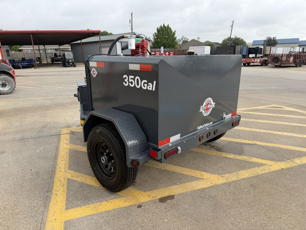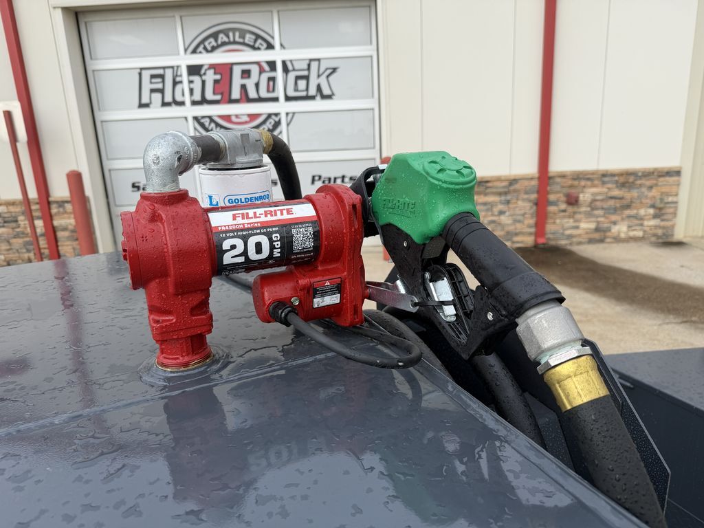 350 Gallon 5’ x 4’ Diesel Tank 4’ x 5’ Diesel Tank Trailer With 350 Gal Tank Fill Rite Pumping System 20 GPM Elec. Fill Rite Pump w/ 20’ Hose / Auto Nozzle / Filter Kit Charging Kit W/ Battery / Trickle Charger / Toolbox 5,200 lb. GVWR 1 x 5,200 lb EZ Lube Brake Axle 350 Gal. Smooth Plate Tank 7 Gauge Floor x 10 Gauge Body Double Eye Spring Suspension 15 In Mod Black 6 Hole Wheels ST 225 75 R15 10 Ply Radial Tires 5 In 6.7 Lb Channel Frame 5 In 6.7 Lb Channel Wrapped Tongue 2 5/16 In Bulldog Style Ram Coupler 7K Drop Leg Jack Double Broke Diamond Plate Fenders 1 Baffle In The Middle 1/2 In Drain In The Back Centered 1 x 2 In Fill Ports On Top Of Tank With Ventable Cap 12 In Extended Tongue With Extra Supports Ready For D.E.F Setup Fits 58 Gal Tank 7 Way Plug Flush Mount Led Lights 1 Coat Of Primer And 2 Coats Of Polyurethane Paint (Painted Underneath) Gray Empty Weight: 1,250 lb. GVWR: 5,200 lb. Carrying Capacity: 3,950 lb.