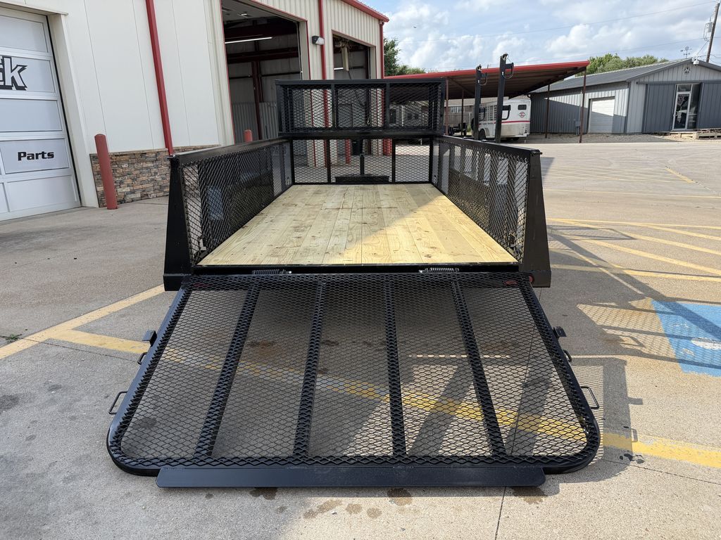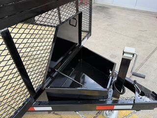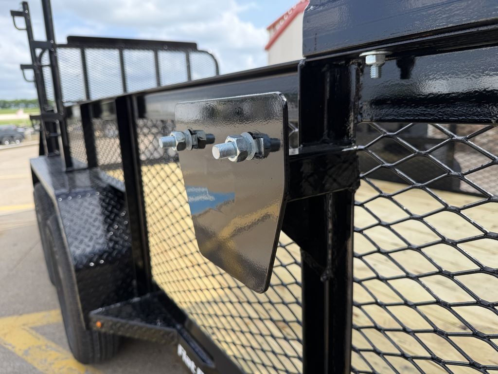 77 in x 14’ x 24 in Landscape Trailer 2 x 3,500 lb. Axles (Brakes on Rear Axle) ST 205 75 R15 Upgraded Radial Tires 24 in Expanded Metal Sides Front Toolbox Solid Side Fender Baskets Lockable Enclosed Tongue Basket H/D Spare TIre Mount 48 in Spring Assist Rear Ramp Gate Weed Eater Racks Stake Pockets with Cut Outs 4 in Channel Wrapped Tongue 2 in 8K Coupler 3 in x 2 in x 3/16 in Angle Frame Treated Wood Floor 7K Set Back Jack with Foot and Brace 5 on 5 Bolt Pattern Empty Weight: 1,850 lbs. GVWR: 7,000 lbs. Carrying Capacity: 5,150 lbs
