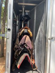 Purchased new in December of 2024. Haven't hauled anything in it, hate seeing it just sitting there. Bronco Edition all the upgrades, movable (adjustable too) saddle rack, locks all around, LED lights and 7' at the door. Big dressing room. If you are serious and have any questions just let me know. Thank you for looking.