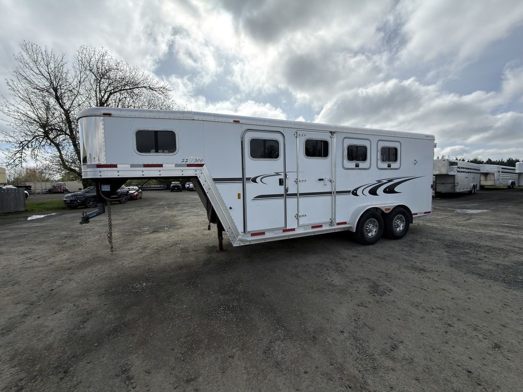 2005 Exiss SS-300 3 Horse GN Horse-friendly features are blended perfectly into this Exiss Trailer! Features may include: STRUCTURAL Height: Width: Total Length: WHEELS, TIRES and AXLES 2 Axles Tires and Spare Tire Wheels STALL AREA Double Rear Doors w/Window Aluminum Floors Fully MattedEscape Door (First Stall) Drop Down Windows Head Side (stalls, 2 & 3)Sliding Bus Windows Tail SideInterior and Exterior Tie Rings (one per stall) Two-way pop up vents (one per horse) Aluminum Dividers with Slam Latches TACK ROOMCollapsible Rear Tack Bridle Hooks Stationary Saddle Rack FRONT DRESSING ROOM Carpeted GN Lino Flooring Window ShadesSink Hot Plate Burner Counter w/Under Cabinets Hand Crank VentMirrorStorage Wall Board Walls and Ceiling Please Note, this trailer is on consignment. Being Sold AS IS. All Horse Trailers, will be ran through our service department AFTER they are sold. Pickup & Delivery time is based on the service department’s schedule at the time of purchase.*Please review all features with a salesperson. We try our best, but sometimes features and dimensions get mislisted. Thank you!*Akins Trailer Sales541-995-4884* Located in Harrisburg, Oregon* Financing Available* Trade-Ins Considered on Consignment Units www.akinstrailersales.com