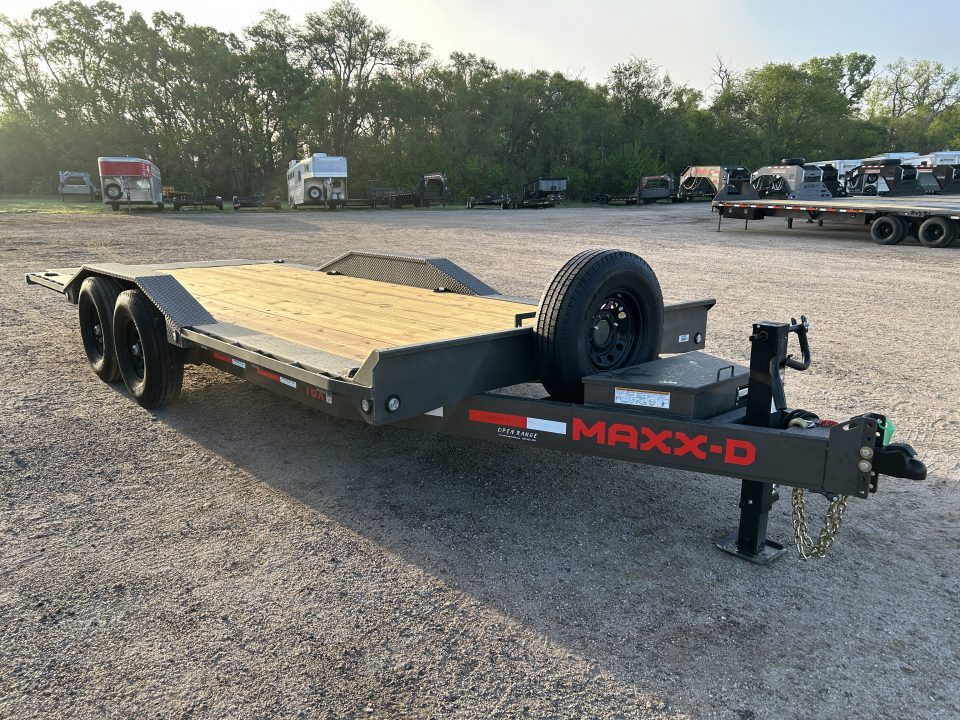 2026 MAXX-D T6X 102X20 TILT TRAILER 14,000 LB GVWR 2 5/16” ADJUSTABLE COUPLER 1-10K DROP-LEG JACK 8” CHANNEL WRAP TONGUE WITH TOOLBOX 6X2 3/16” TUBE FRAME 3” CHANNEL ON 16” CENTERS STAKE POCKETS, RUBRAILS AND PIPE SPOOLS NO STATIONARY/KNIFE EDGE REAR 2-7K ELECTRIC BRAKE AXLES TORSION SPRING SUSPENSION 22.5* UP ON 2 AXLES ST235/85R16 G RADIAL TIRES on 2-7K DRIVE-OVER FENDERS 2X8 TREATED WOOD FLOOR FLUSHMOUNT LED’S / STANDARD SEALED WIRING HARNESS MAXXD GRAY METALLIC & PRIMER 4x EXTRA 5/8” BULL-NOSE D-RINGS BETWEEN FENDERS WINCH PLATE IN FRONT TOOL TRAY BEHIND TOOLBOX SINGLES (1) SPARE ST235/85R16 G TIRE