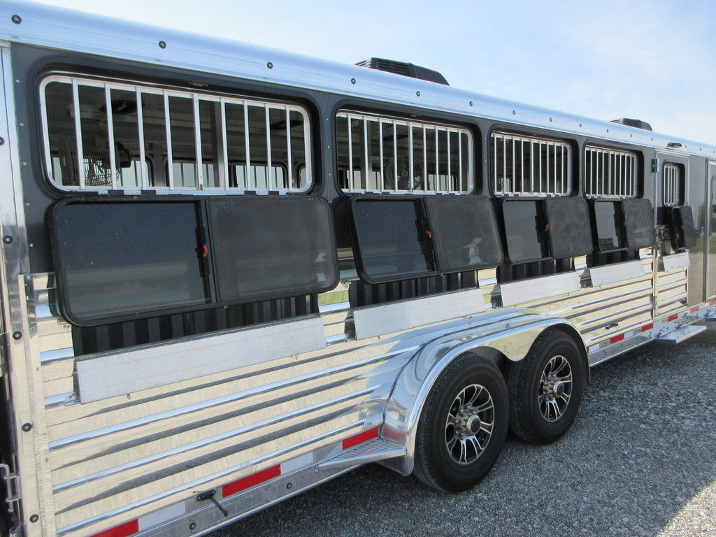2021 Exiss Polished, 10 pen 50/50 60/40 pens, 40 clearance lights per side, Ramp over rear doors, 6’ Tack, WERM Floor, 2 Roof A/C Units, Drop windows, two-way roof vents, fans, Water system piped from front to back, lighted sign, lower air gap, aluminum wheels, Trades considered, financing available with approved credit. Main Trailer Sales, LLC 812-524-7986 www.maintrailersales.com 905 S. Commerce Drive Seymour, IN 47274. Stock#K75352 2021 Exiss Polished, 10 pen 50/50 60/40 pens, 40 clearance lights per side, Ramp over rear doors, 6’ Tack, WERM Floor, 2 Roof A/C Units, Drop windows, two-way roof vents, fans, Water system piped from front to back, lighted sign, lower air gap, aluminum wheels, Trades considered, financing available with approved credit. Main Trailer Sales, LLC 812-524-7986 www.maintrailersales.com 905 S. Commerce Drive Seymour, IN 47274. Stock#K75352