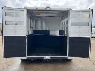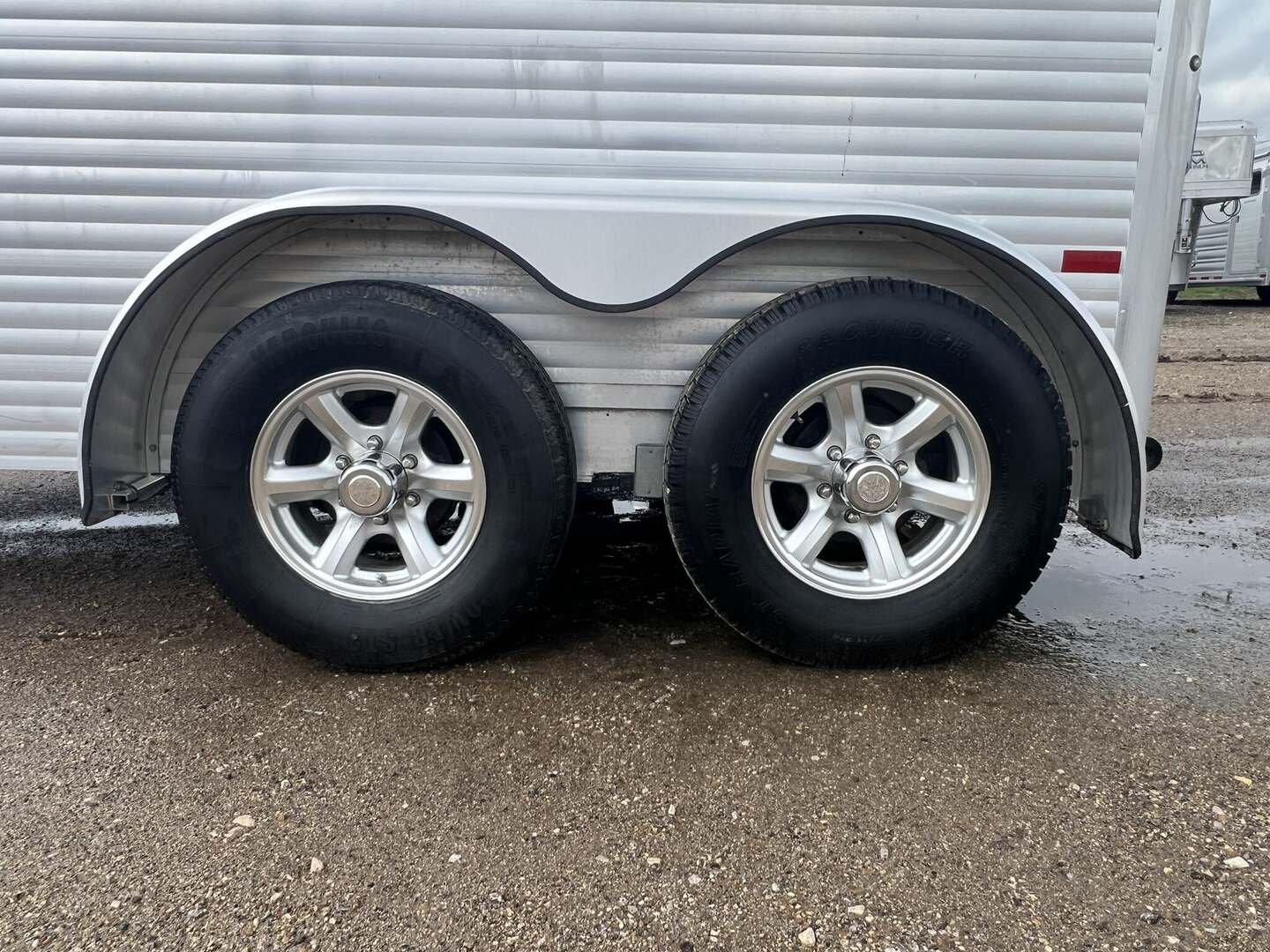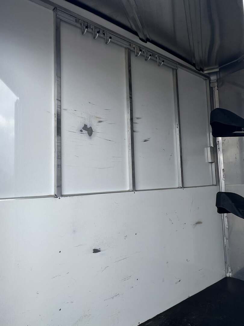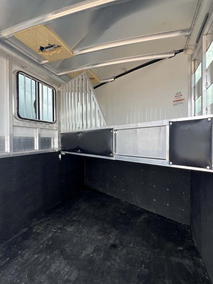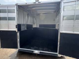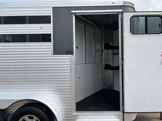 2017 Sundowner 2 Horse Bumper Pull SUPER SPORT 6’9” wide x 13’ long x 7 tall Drop down windows on head side, slats on rump wall Saddle rack and bridle hooks in dressing room Double rear gates Aluminum wheels on 15” tires 3500# axles Aluminum gravel guard
