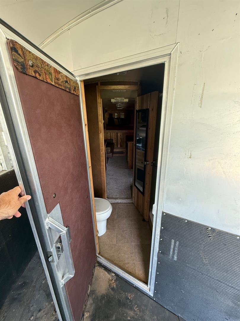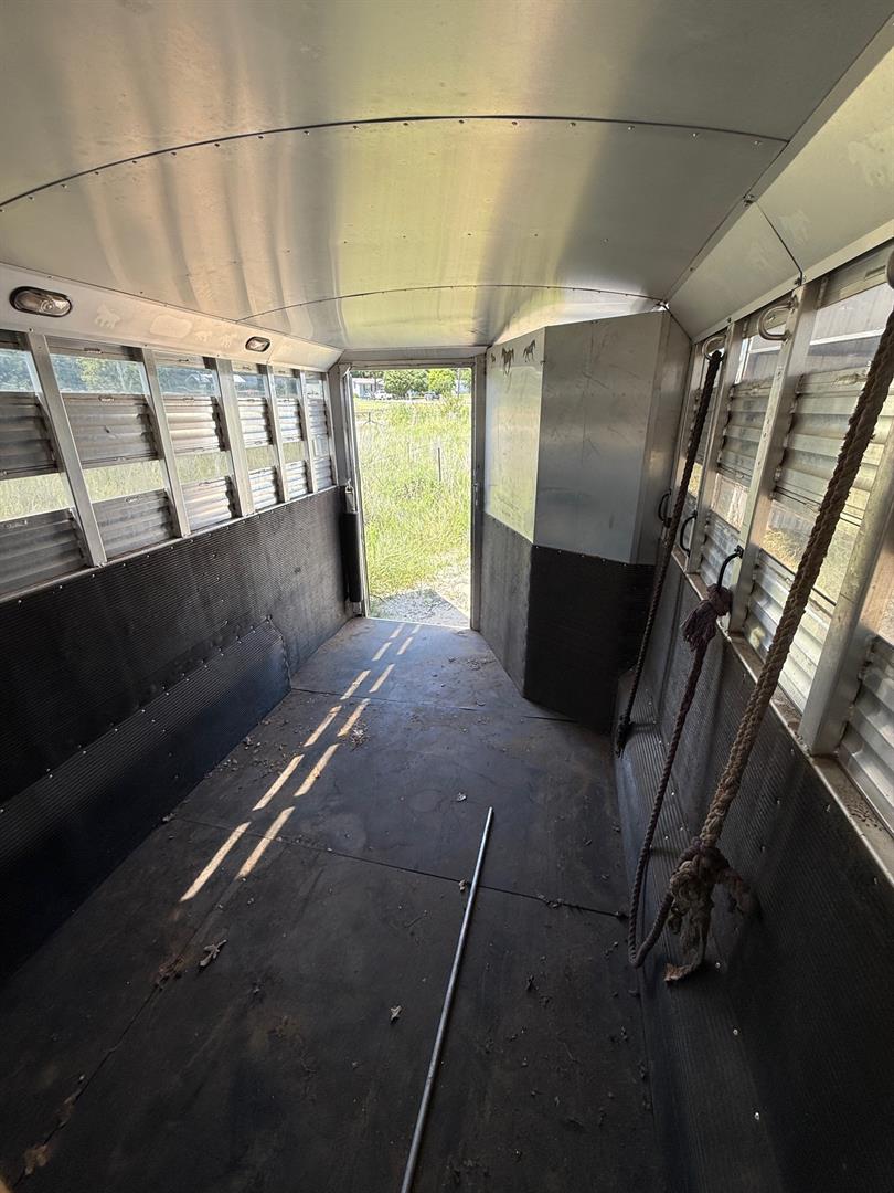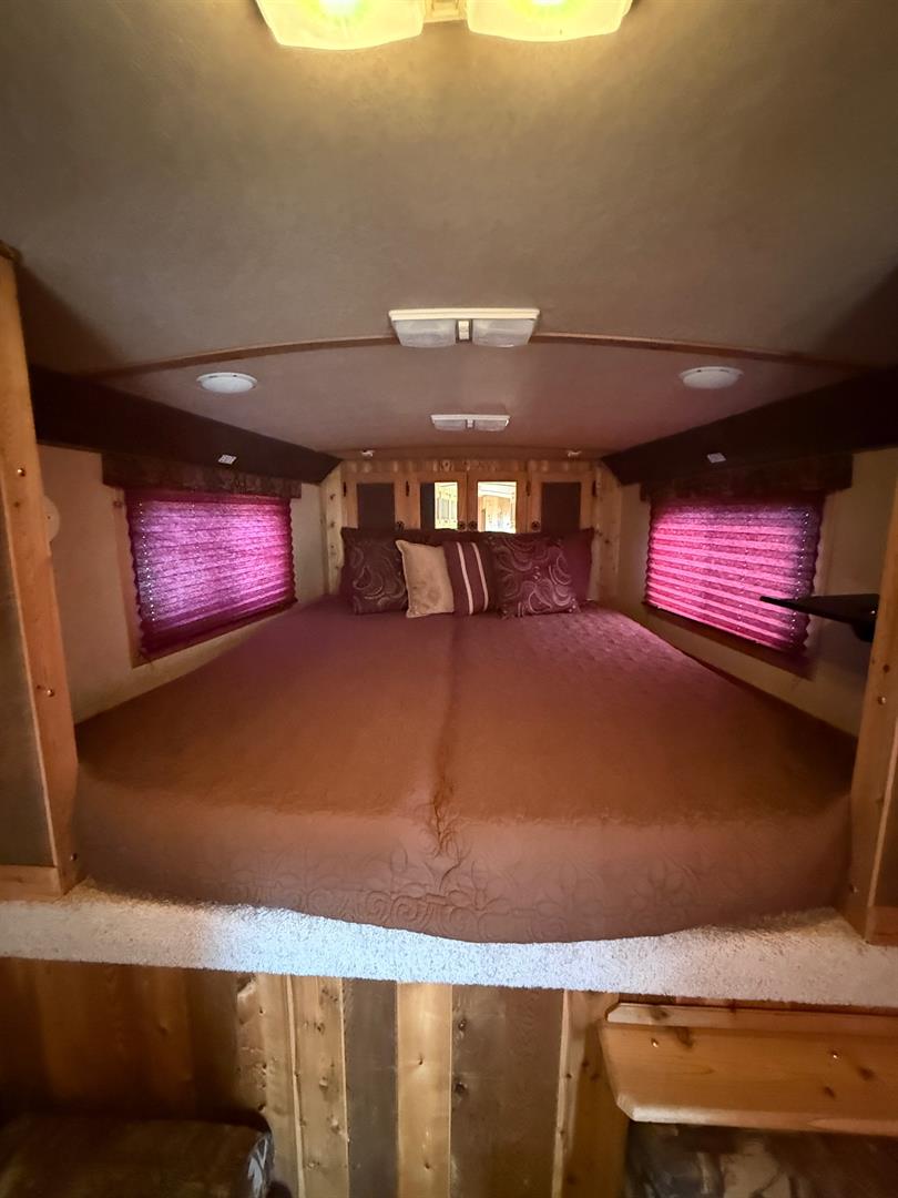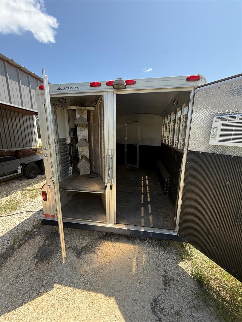 Custom living quarters that include front and rear AC units with heat strips, queen bed, jack sleeper sofa, dinette/bed, can sleep 4 total, along with a full bathroom with closet. No damages ever, everything works without issue. Floor plus g-neck is 35 foot. Trailer has an installed electric jack, brand new 7k pound axles with 2 year warranty, new brakes, alluminum wheels with 3yr tires (minimal miles), 60/40 rear doors, 50 gal fresh water tank, 12 gal water heater, 2/28 gal waste water tanks, and a 16ft awning. Trailer is also wired for a generator.