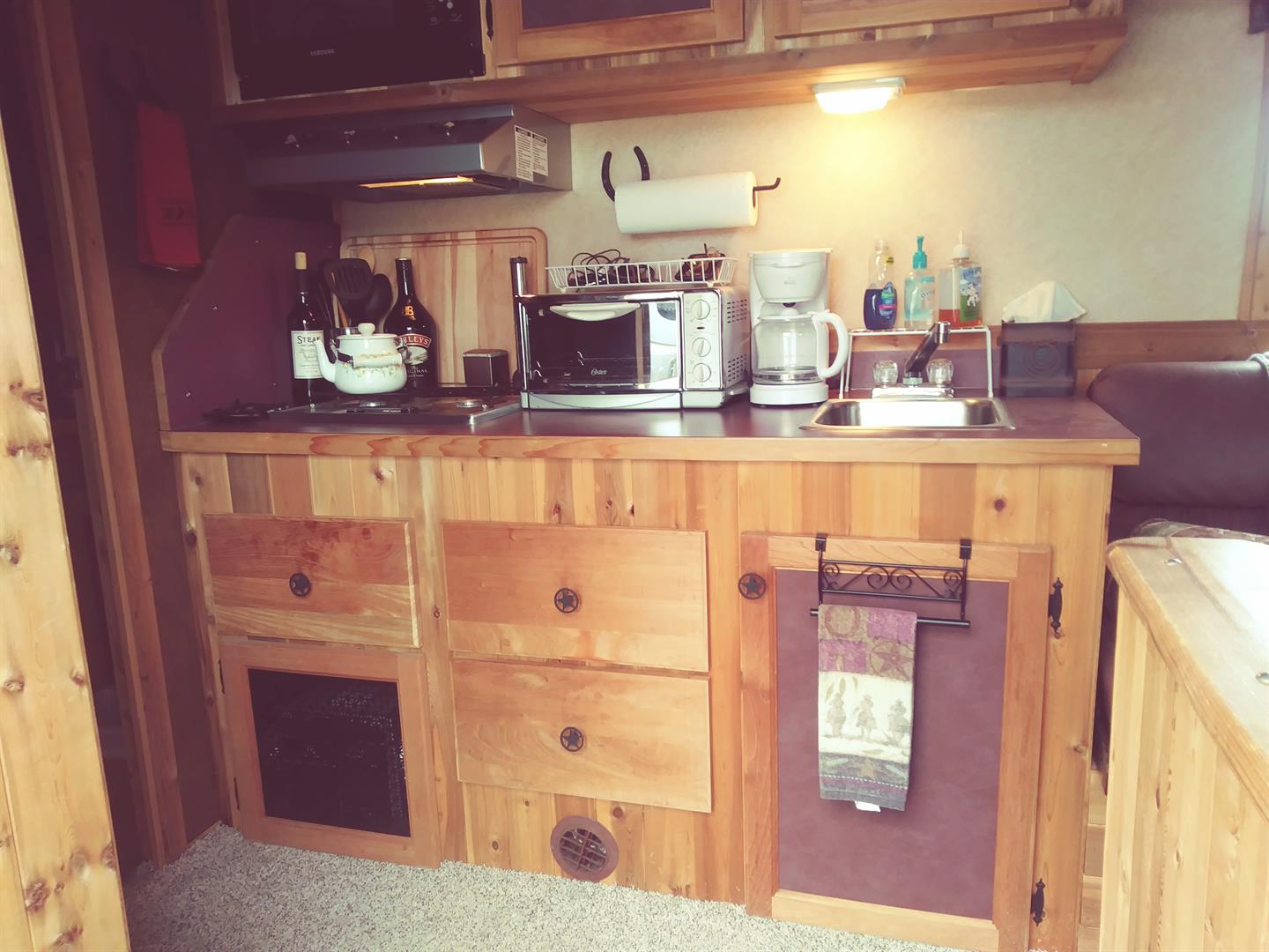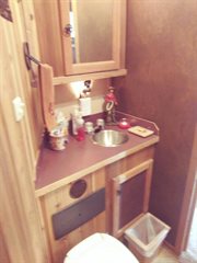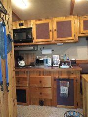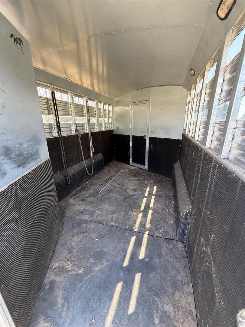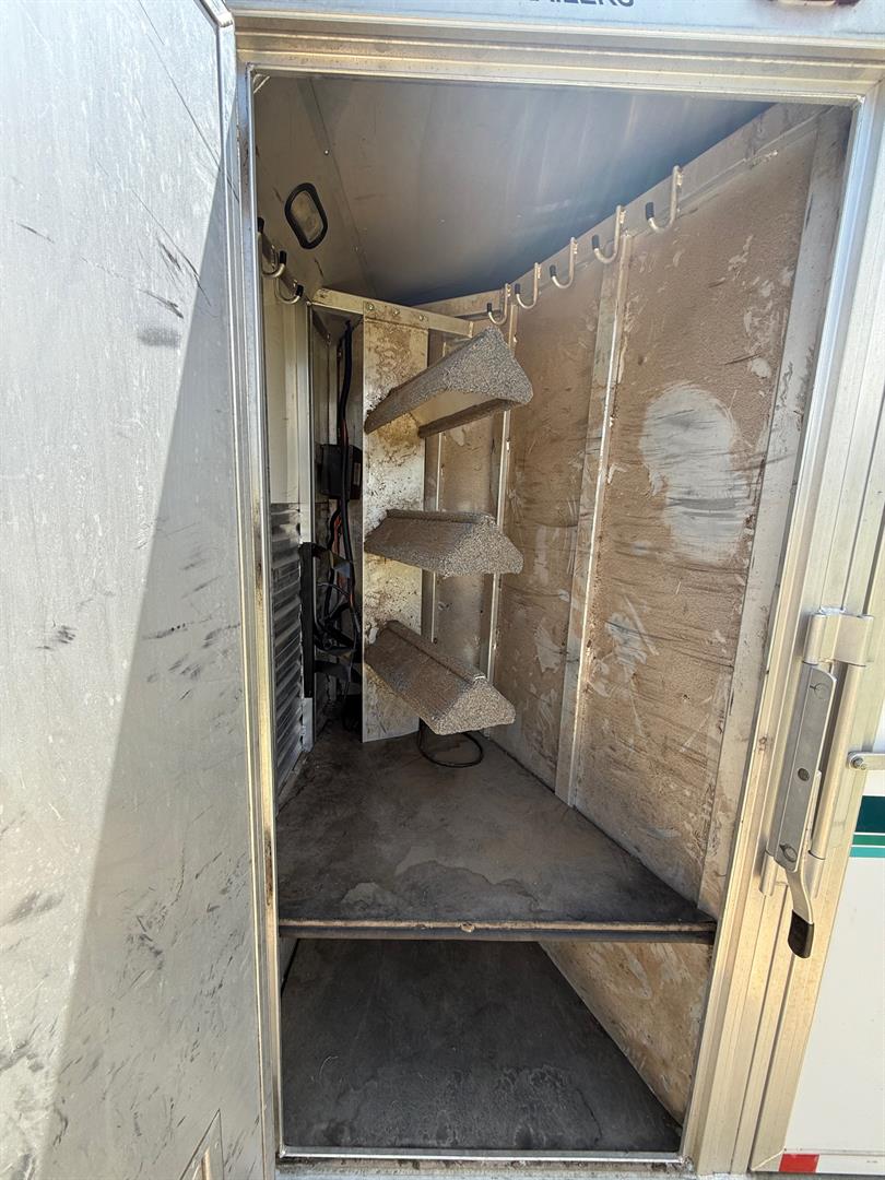 Custom living quarters that include front and rear AC units with heat strips, queen bed, jack sleeper sofa, dinette/bed, can sleep 4 total, along with a full bathroom with closet. No damages ever, everything works without issue. Floor plus g-neck is 35 foot. Trailer has an installed electric jack, brand new 7k pound axles with 2 year warranty, new brakes, alluminum wheels with 3yr tires (minimal miles), 60/40 rear doors, 50 gal fresh water tank, 12 gal water heater, 2/28 gal waste water tanks, and a 16ft awning. Trailer is also wired for a generator.